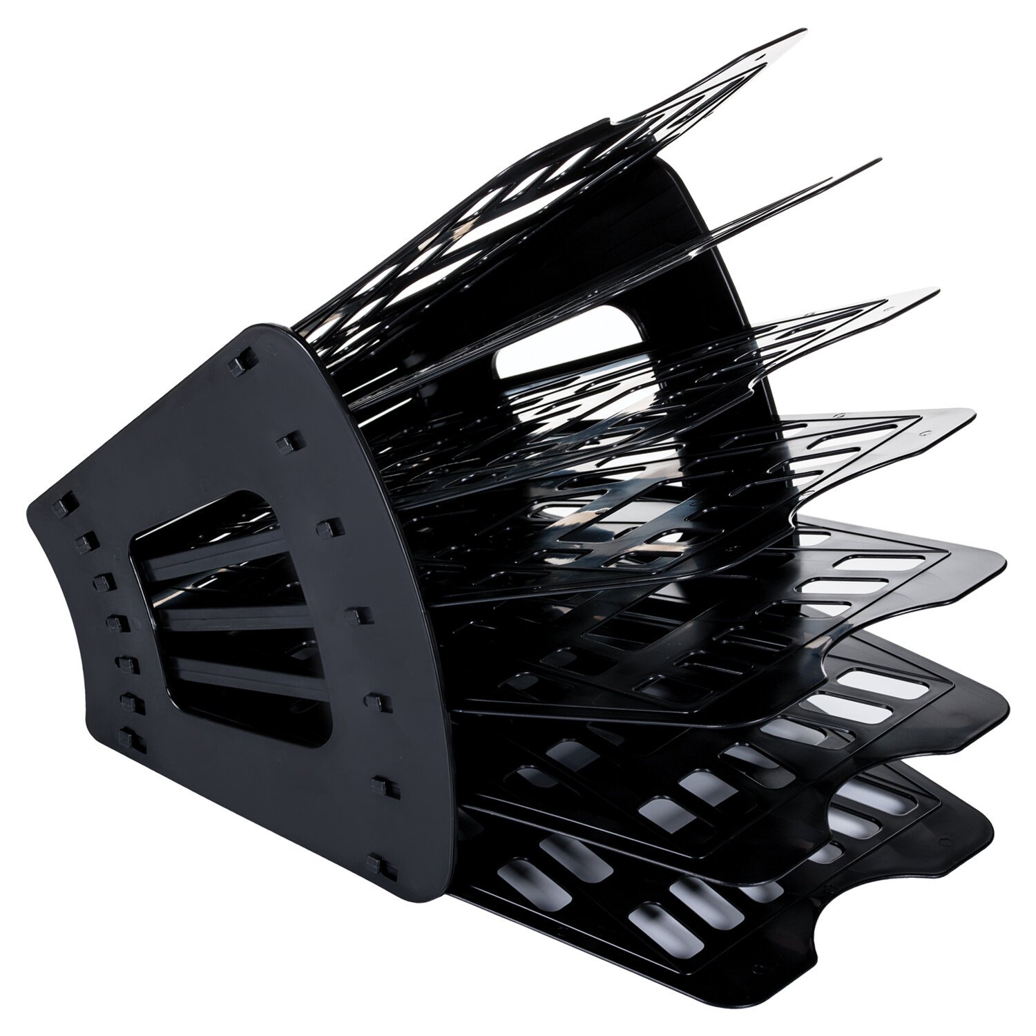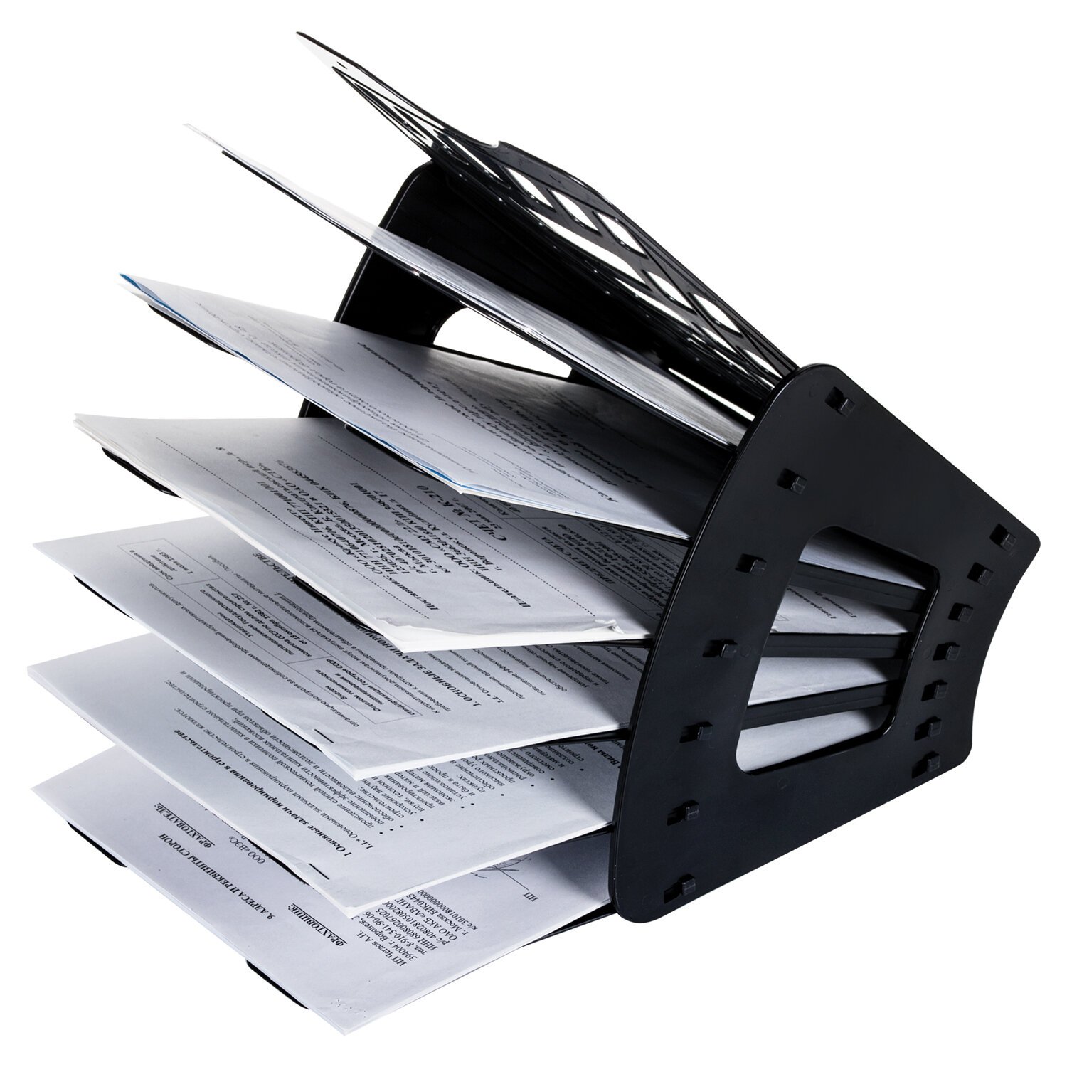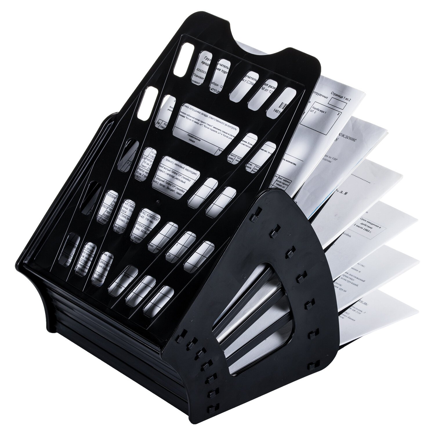 Лоток для бумаг веерный BRAUBERG "Basic" 7-ми секционный, 6 отделений, сетчатый, черный, 237019