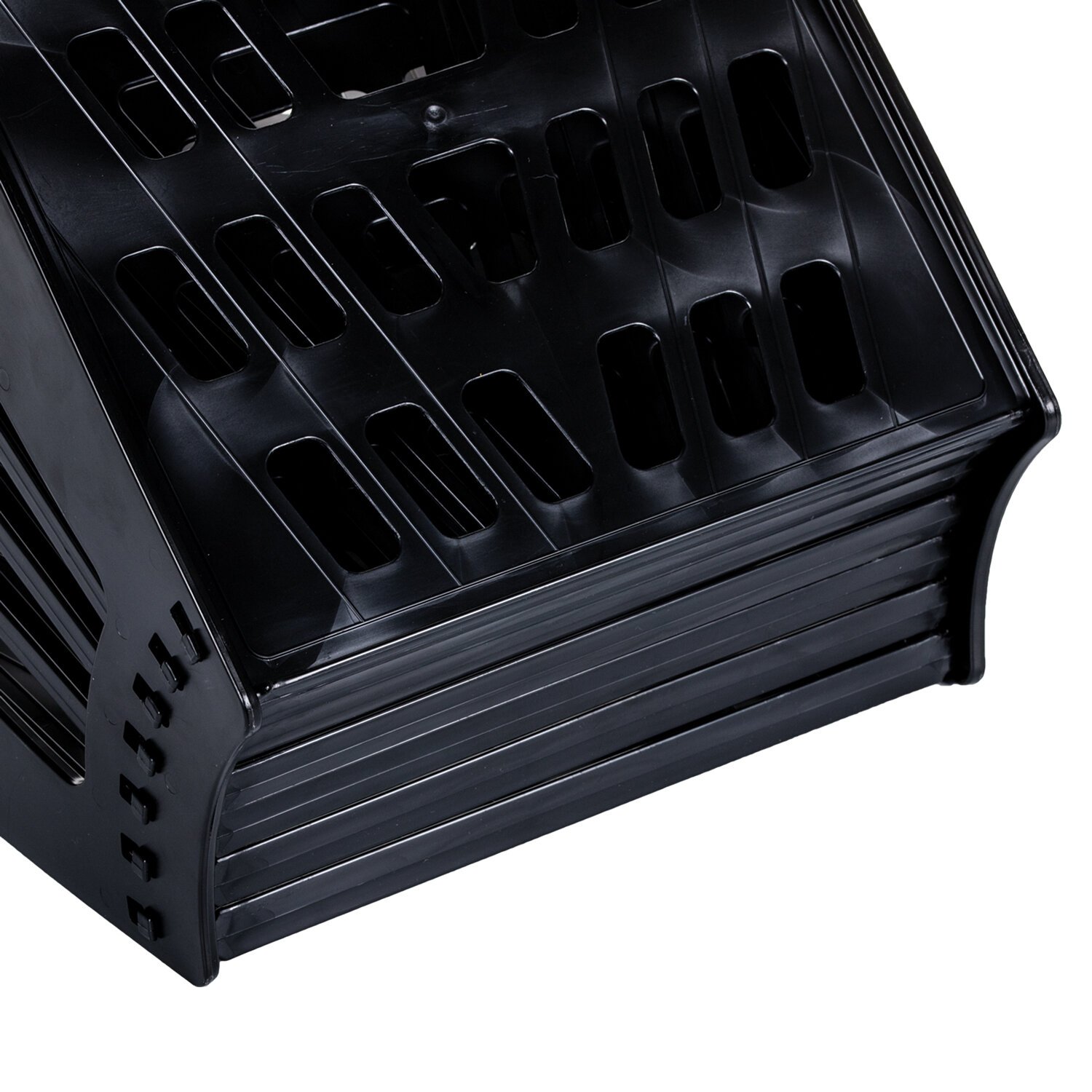 Изготовлен из пластика черного цвета. Размер собранного лотка с 6 отделениями - 300х235х320 мм. Расположение возможно как вертикальное, так и горизонтальное. Упакован в термоусадочную пленку, поставляется в компактном разобранном виде.
