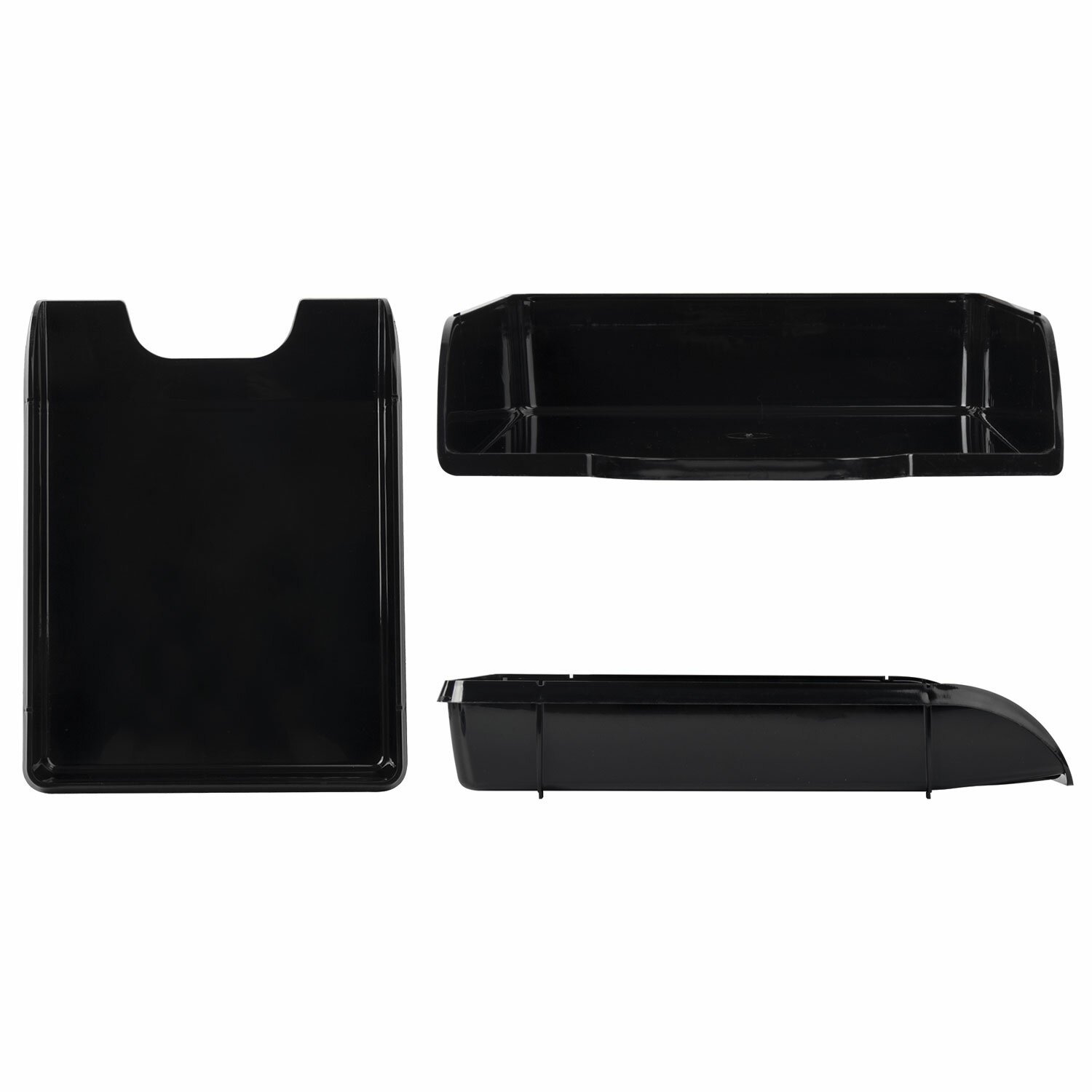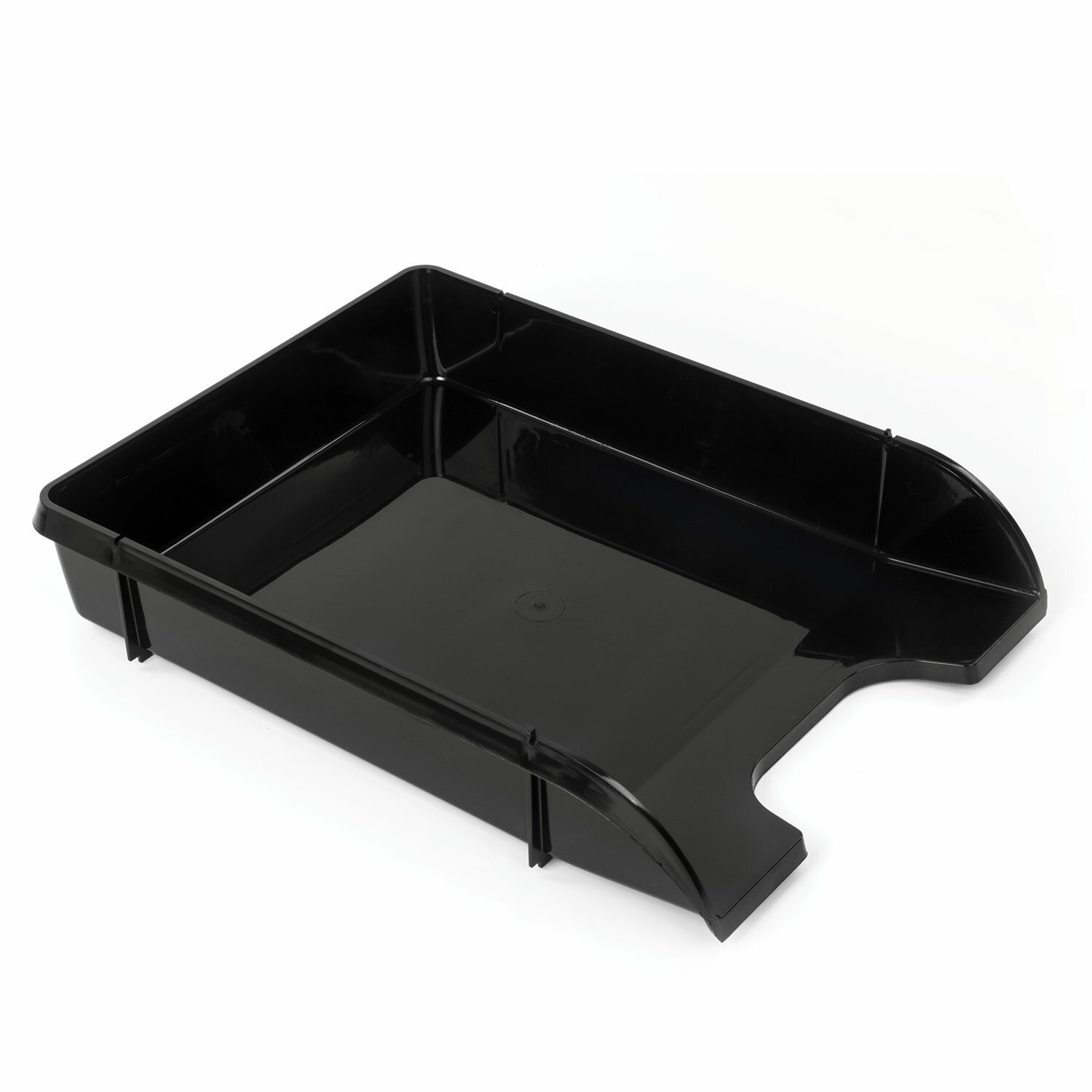 Изготовлен из прочного полистирола. Размер (ГхШхВ) - 330х240х62 мм. Обладает устойчивой конструкцией, благодаря которой удобен для хранения объемных документов и папок. Выполнен в черном цвете.