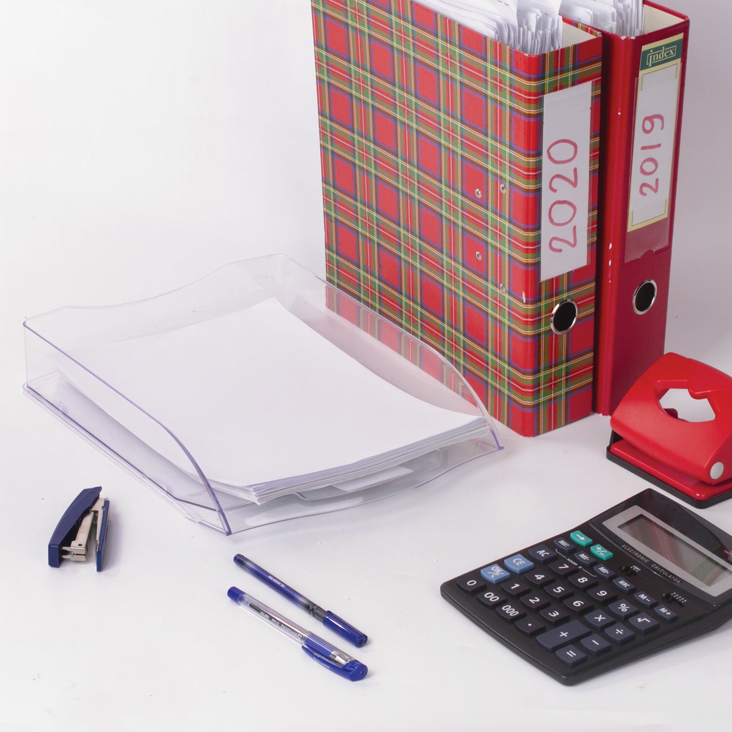 Изготовлен из прочного прозрачного полистирола. Размер (ГхШхВ) - 340х270х60 мм. Обладает устойчивой конструкцией, благодаря которой удобен для хранения объемных документов и папок.