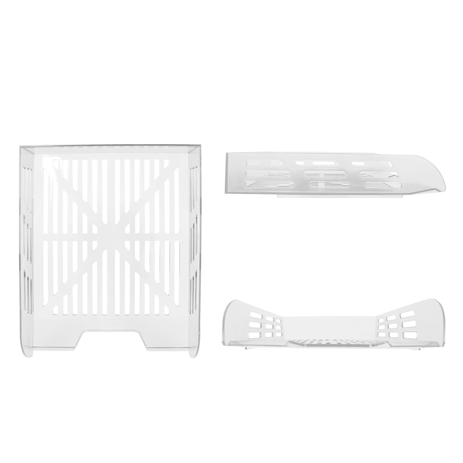 Изготовлен из прозрачного полистирола. Размер (ГхШхВ) - 330х245х65 мм. Обладает устойчивой конструкцией, благодаря которой удобен для хранения объемных документов и папок.