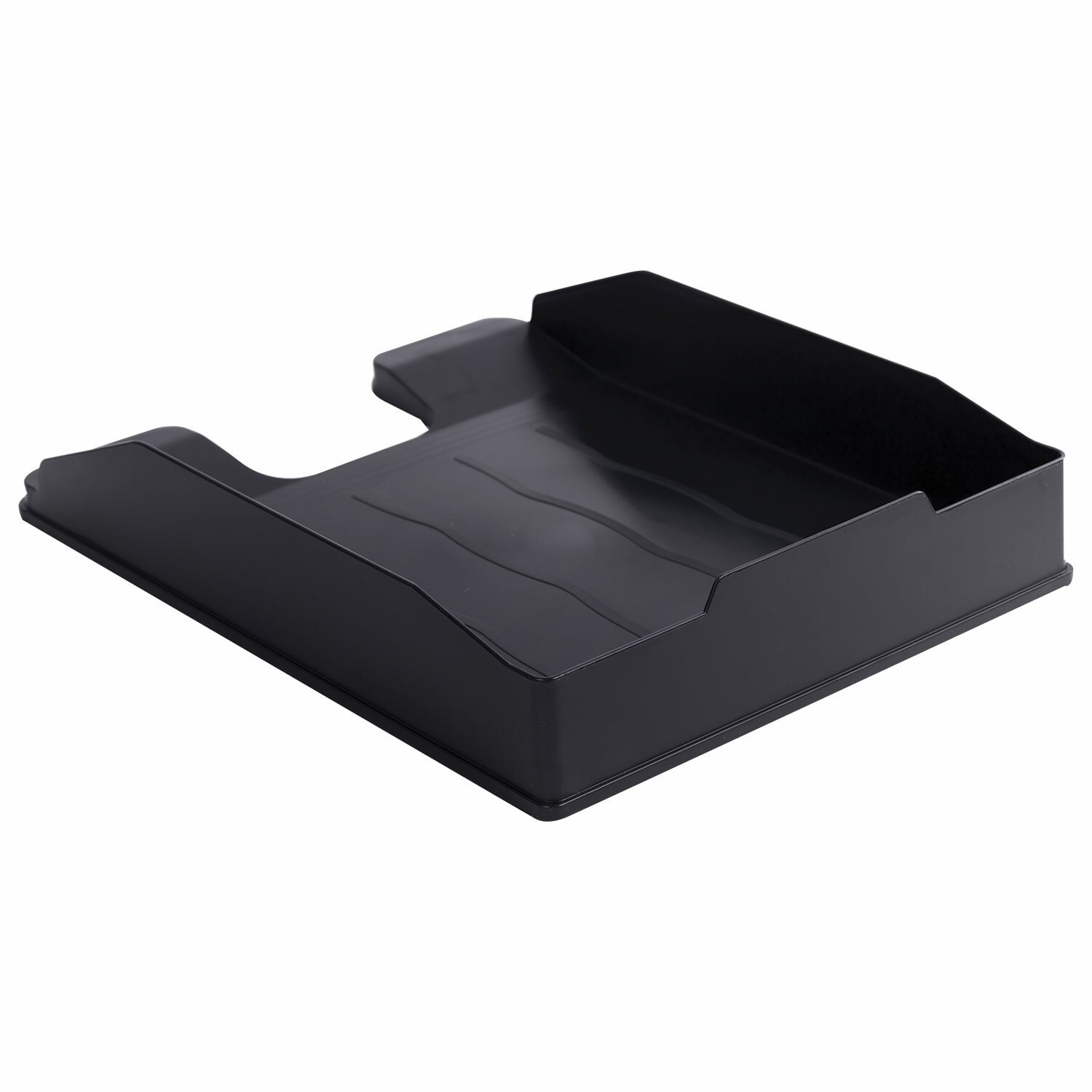 Классический лоток изготовлен из пластика черного цвета. Размер лотка - 340х255х60 мм. Обладает устойчивой конструкцией, благодаря которой удобен для хранения объемных документов и папок. Лотки можно устанавливать друг на друга.
