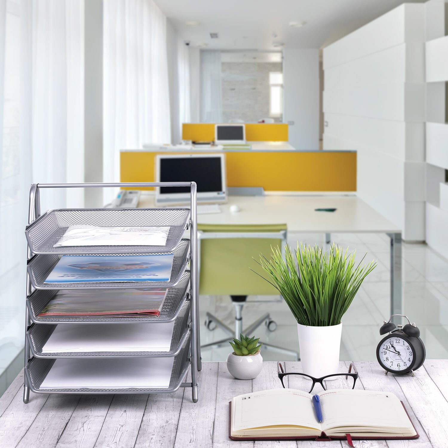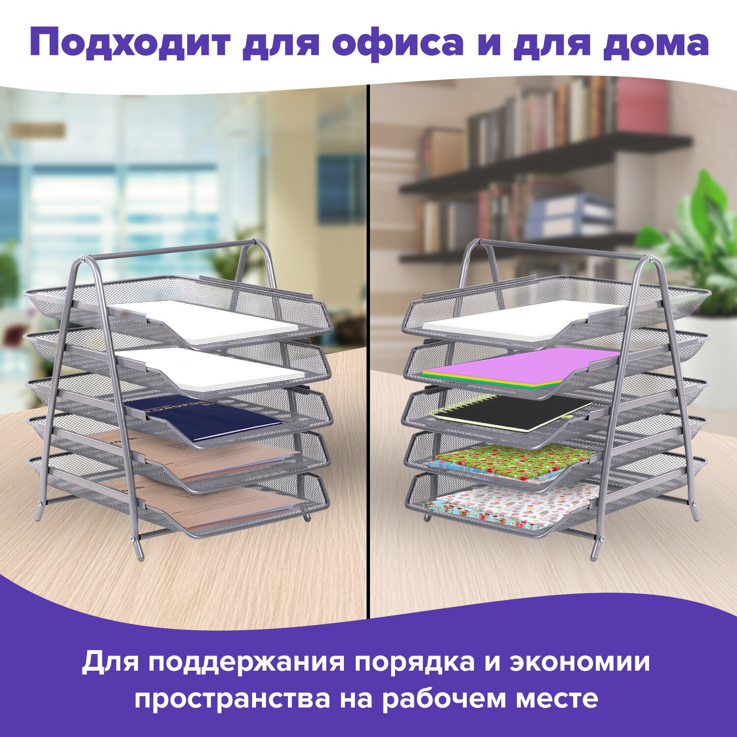 Лоток горизонтальный для бумаг BRAUBERG "Germanium", 5 секций, 370х355х295 мм, металл, серебро, 237972