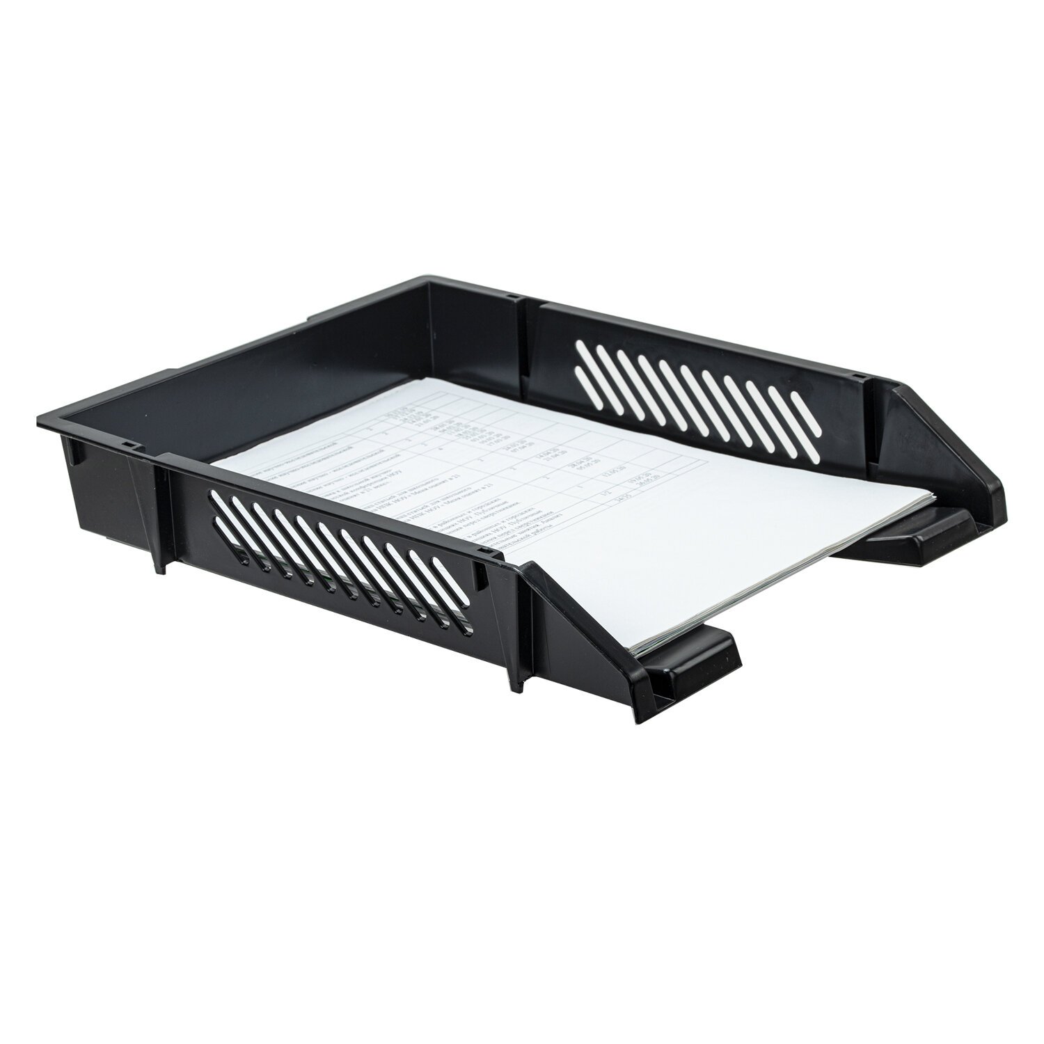 Изготовлен из прочного полистирола. Размер (ГхШхВ) - 343х262х58 мм. Обладает устойчивой конструкцией, благодаря которой удобен для хранения объемных документов и папок.