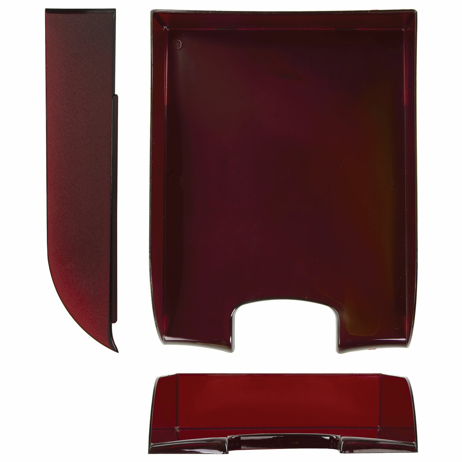 Изготовлен из прочного полистирола. Размер (ГхШхВ) - 320х245х65 мм. Обладает устойчивой конструкцией, благодаря которой удобен для хранения объемных документов и папок. Выполнен в тонированном красном цвете.