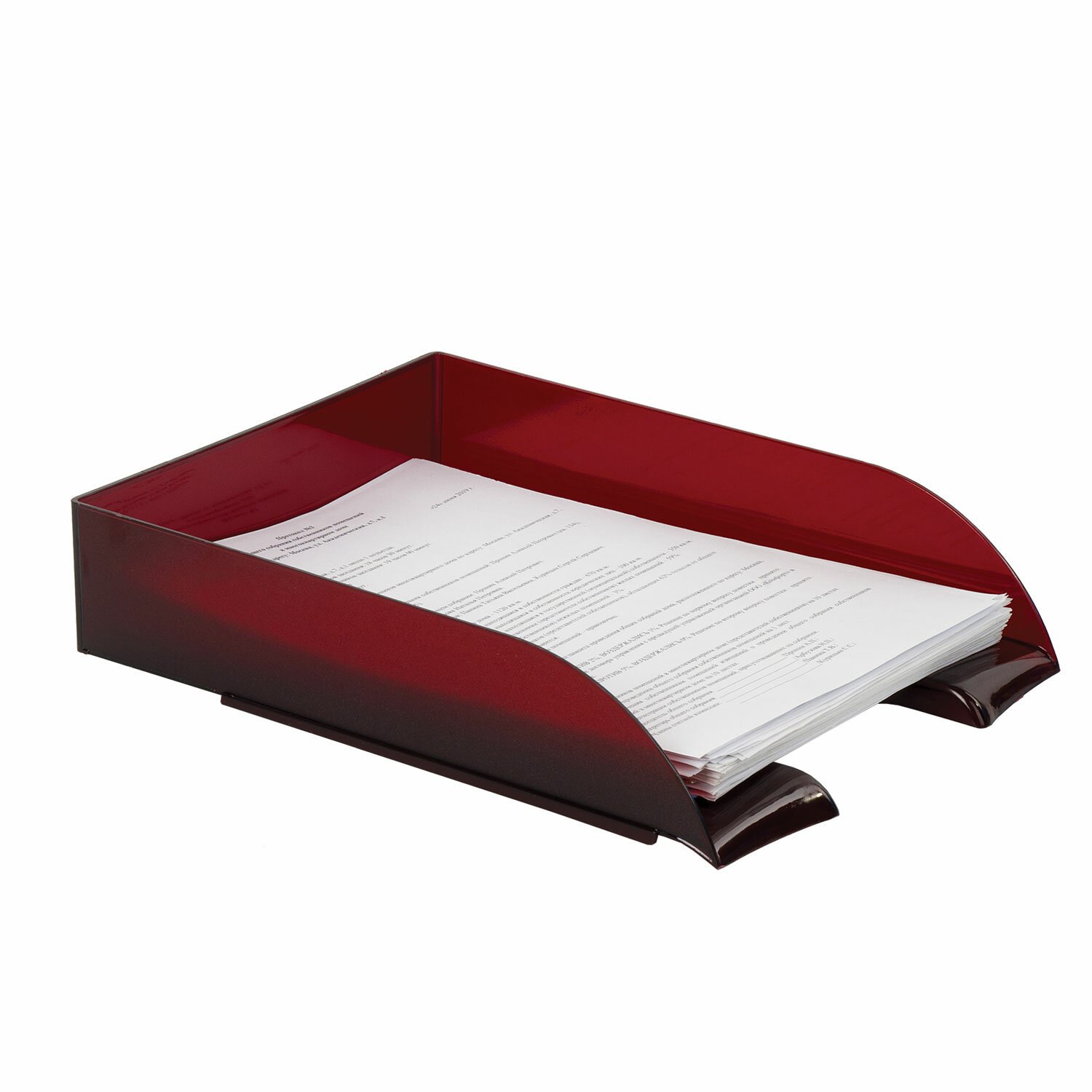Лоток горизонтальный для бумаг BRAUBERG "Office style", 320х245х65 мм, тонированный красный, 237291