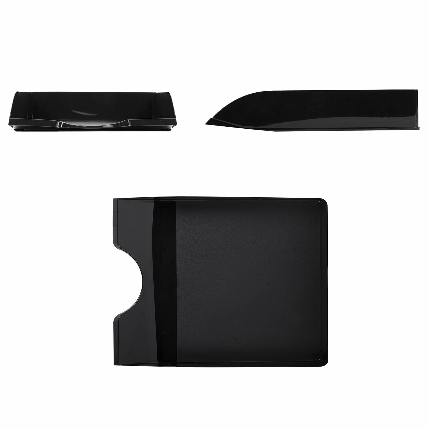 Классический лоток изготовлен из пластика черного цвета. Размер лотка - 315х250х60 мм. Обладает устойчивой конструкцией, благодаря которой удобен для хранения объемных документов и папок. Лотки можно устанавливать друг на друга.