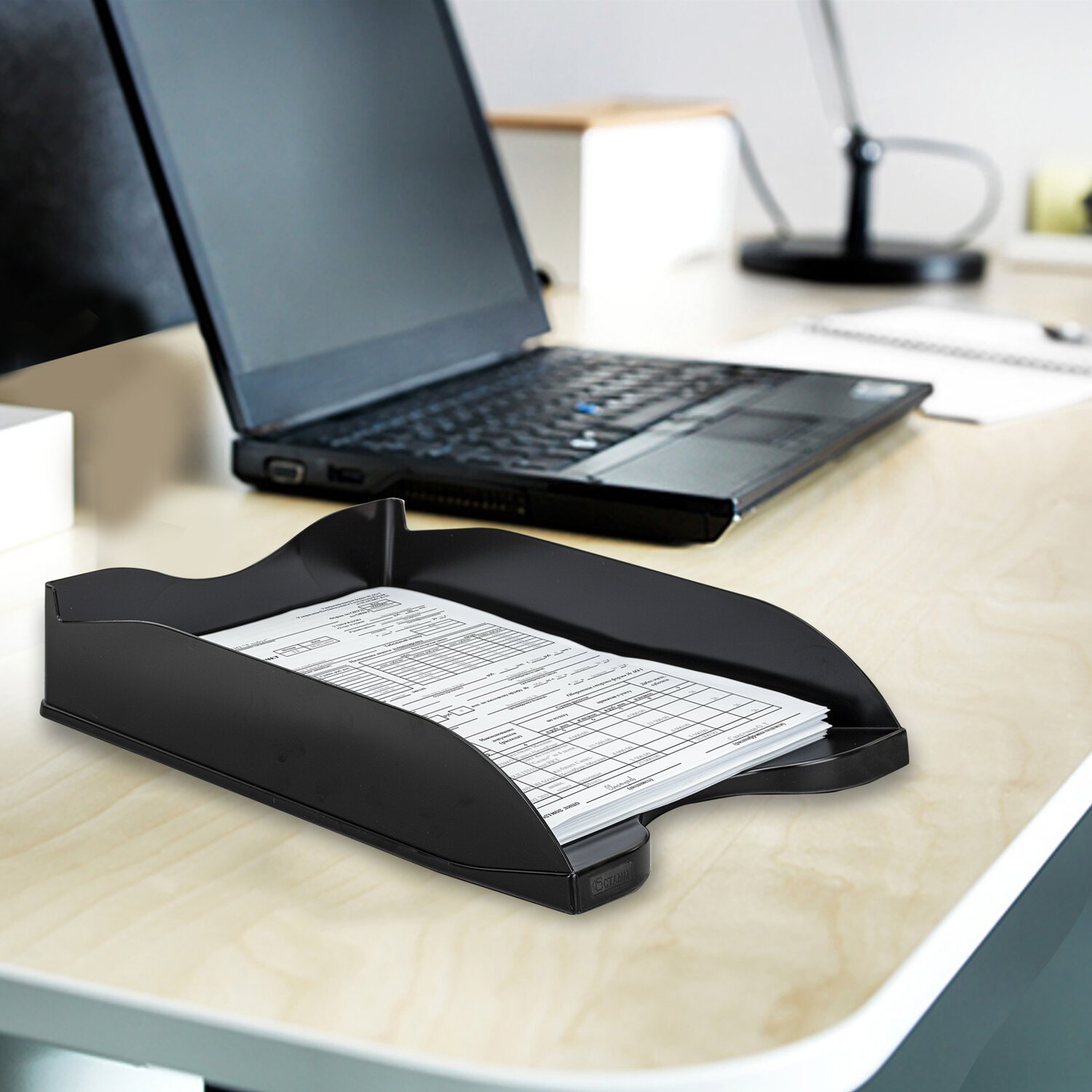 Классический лоток изготовлен из пластика черного цвета. Размер лотка - 345х255х65 мм. Обладает устойчивой конструкцией, благодаря которой удобен для хранения объемных документов и папок. Лотки можно устанавливать друг на друга.