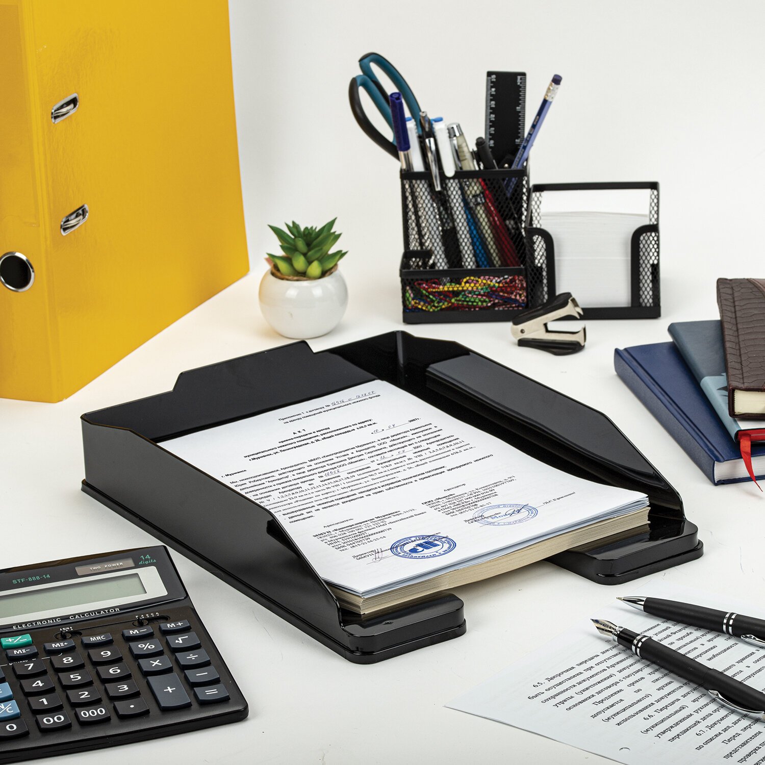 Лоток горизонтальный для бумаг BRAUBERG "Delta", A4 (340х270х60 мм), черный, 237268