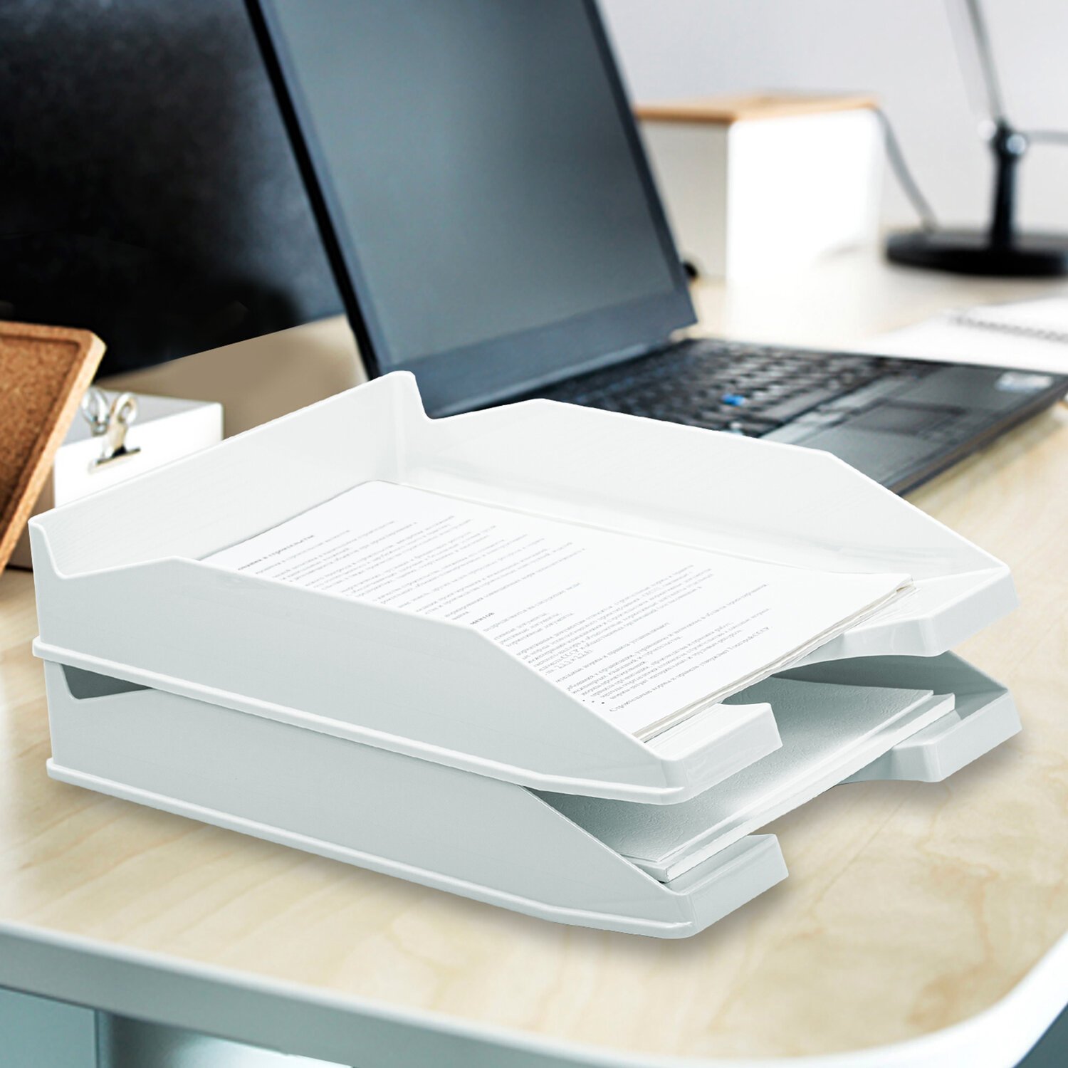 Изготовлены из прочного полистирола. Размер каждого лотка (ГхШхВ) - 346х254х61 мм. Комплект из 2 лотков обладает устойчивой конструкцией, благодаря которой удобен для хранения объемных документов и папок. Выполнен в белом цвете. Лотки могут быть установлены друг на друга или использоваться по отдельности.