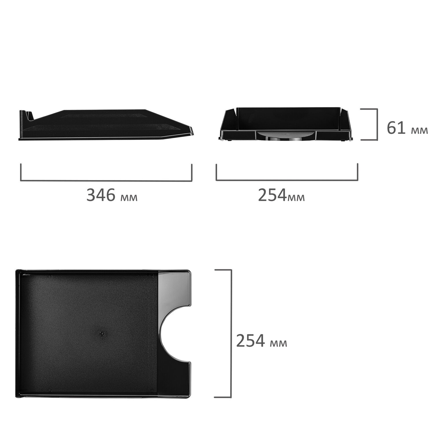Лоток горизонтальный для бумаг "Люкс", А4 (350х255х65 мм), полипропилен, черный, ЛТГ-30866