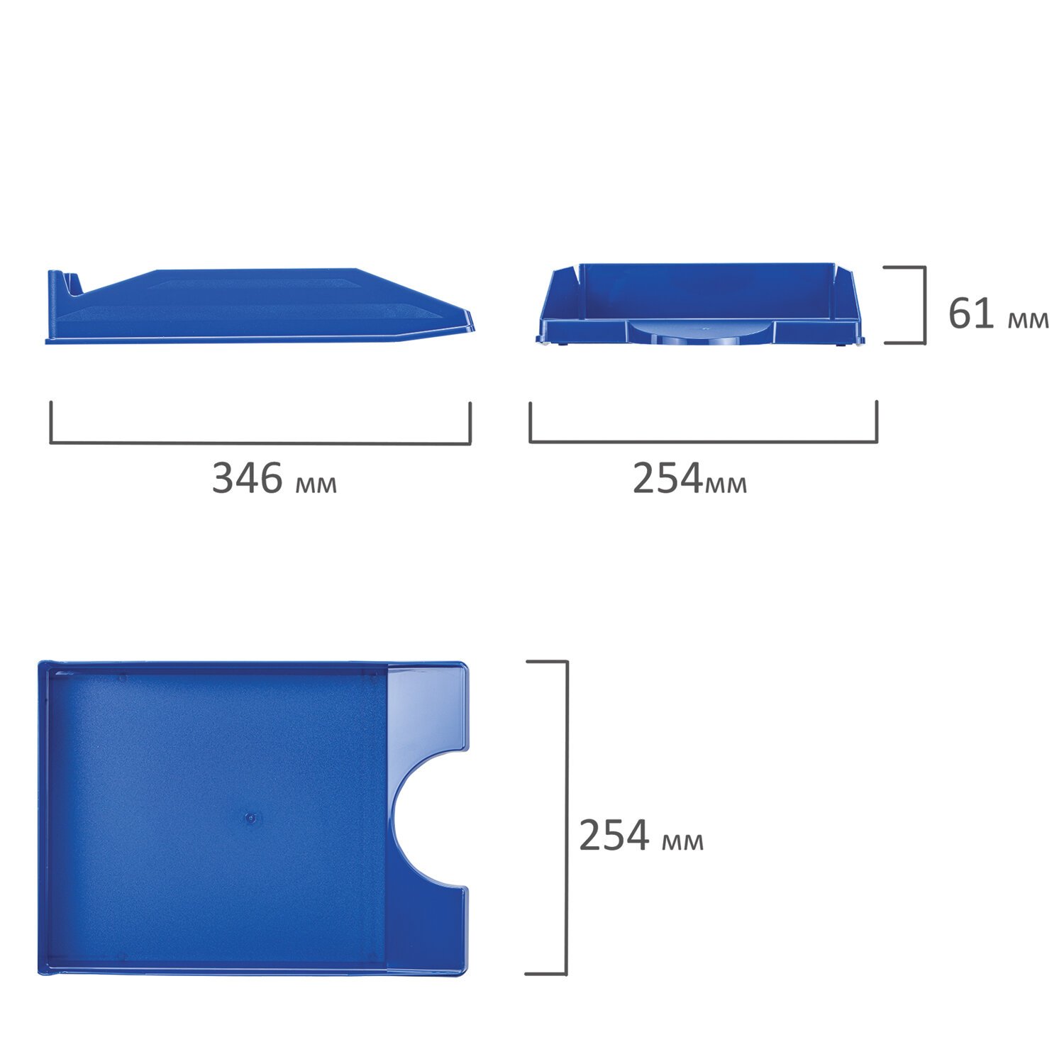 Лоток горизонтальный для бумаг КОМПЛЕКТ 2 шт., BRAUBERG "Modern", 346х254х61 мм, синий, 238027