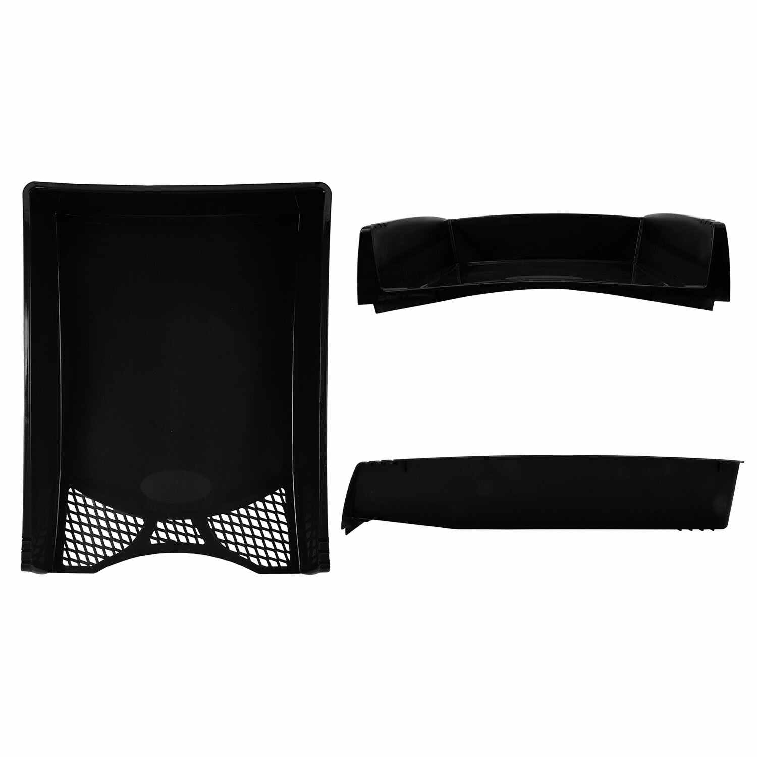 1 отделение. Приподнятая фронтальная часть лотка облегчает изъятие документов из накопителя. Изготовлен из пластика черного цвета. Размер (ВxШхГ) - 60x260х330 мм. Несколько лотков могут быть установлены друг на друга.