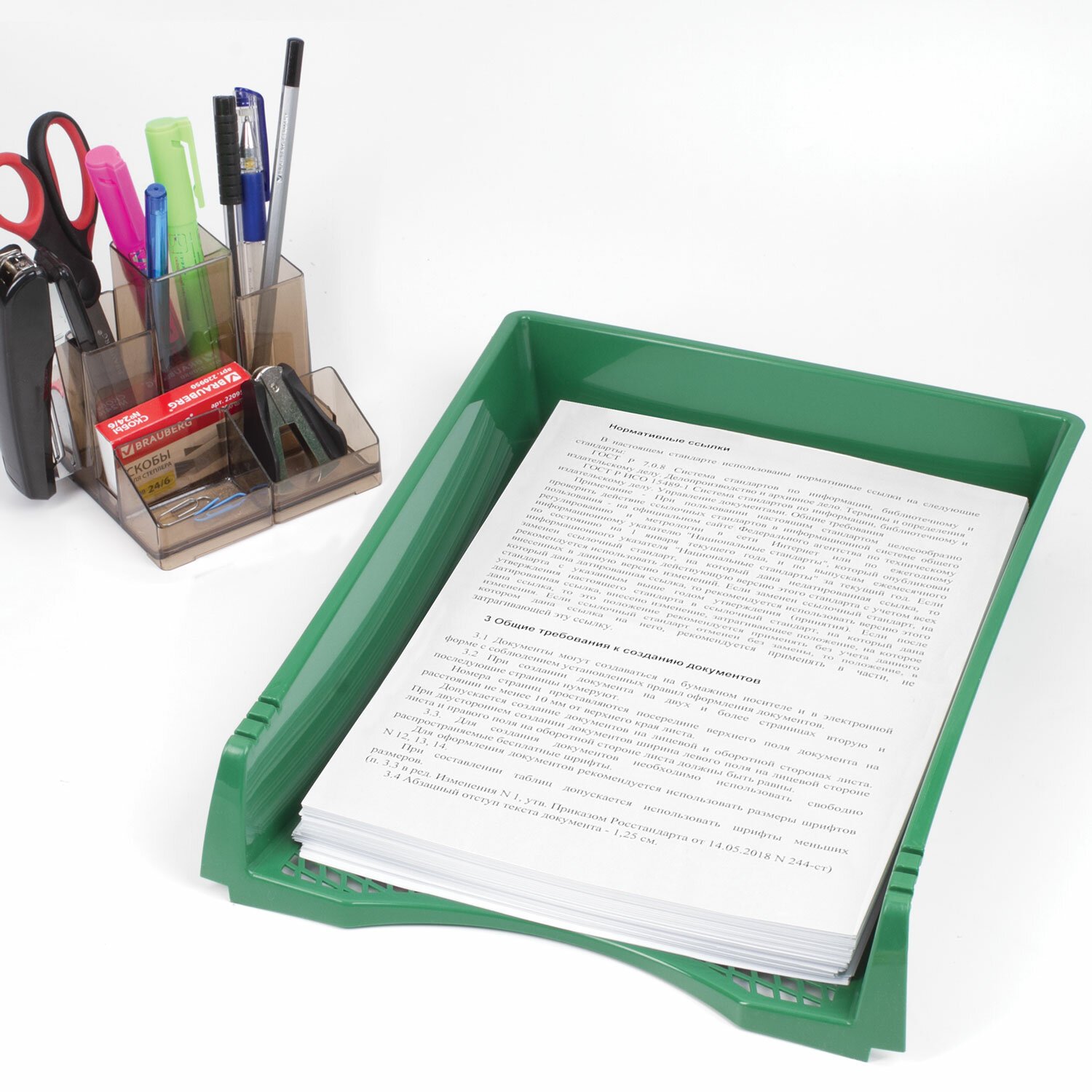 Лоток горизонтальный для бумаг STAFF "Profit", A4 (330х260х60 мм), полипропилен, зеленый, 237273