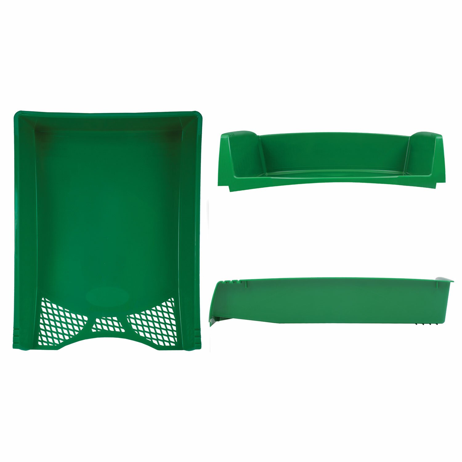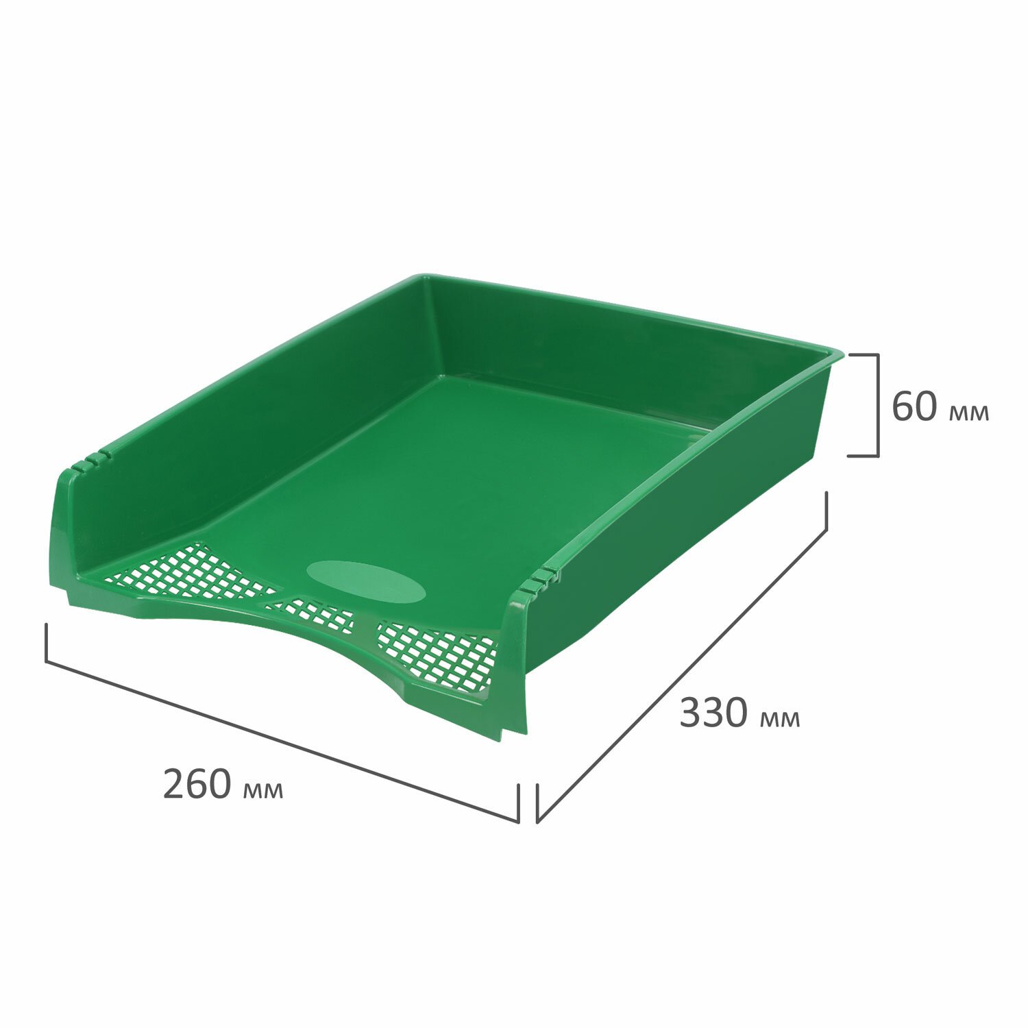 1 отделение. Приподнятая фронтальная часть лотка облегчает изъятие документов из накопителя. Изготовлен из пластика зелёного цвета. Размер (ВxШхГ) - 60x260х330 мм. Удобная транспортировка и хранение за счет укладки лотков один в другой.