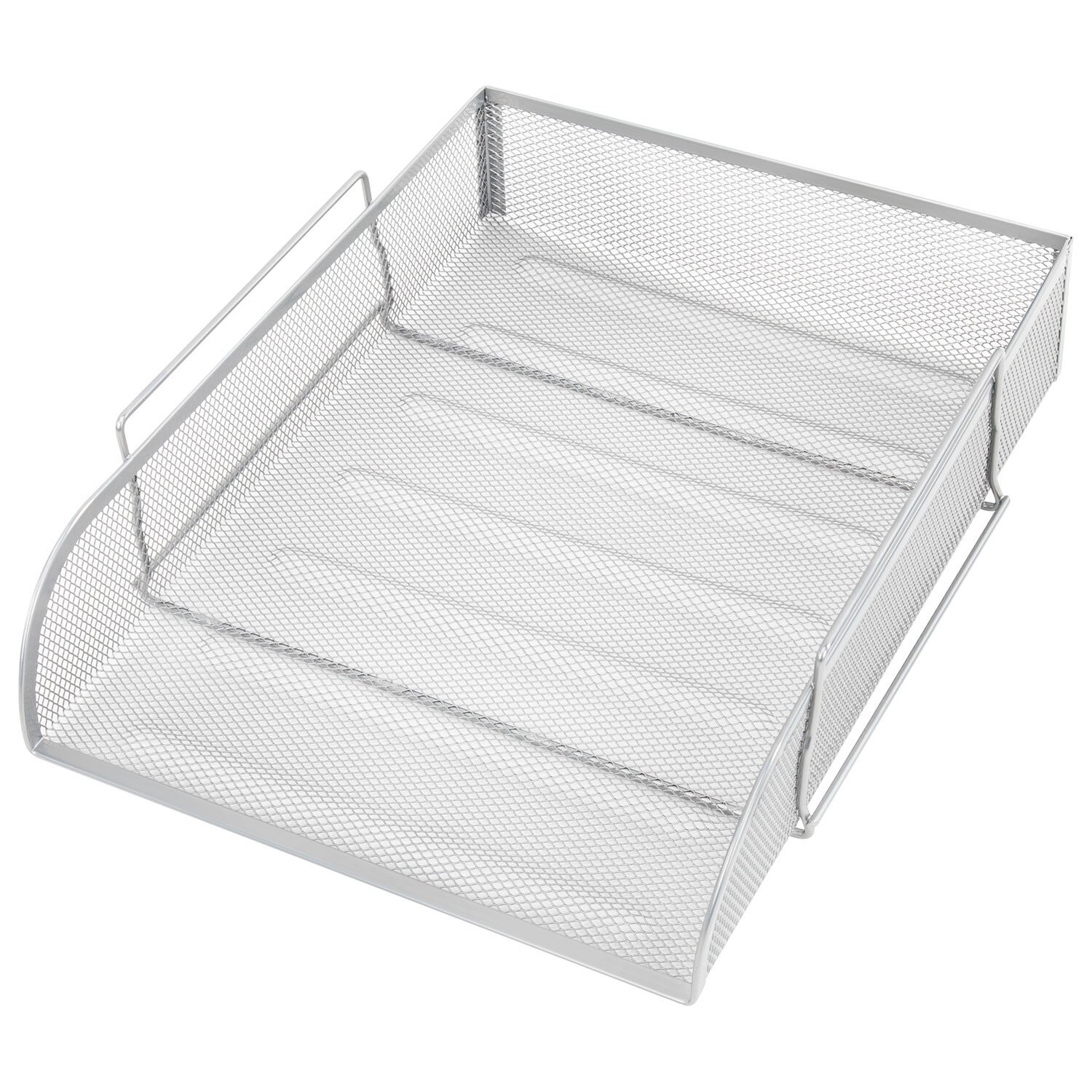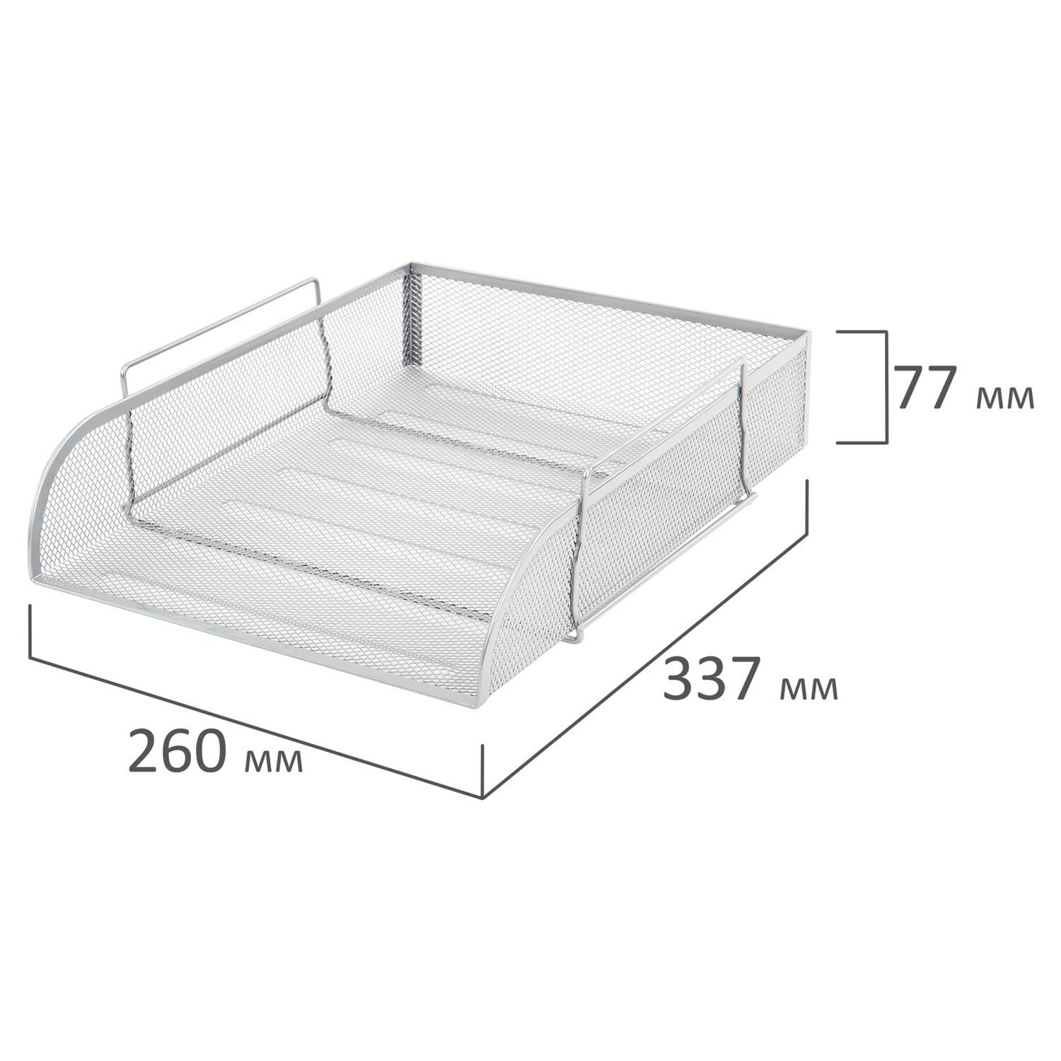 Изготовлен из высококачественной прочной металлической сетки. Выполнен в классическом серебристом цвете. Размер лотка - 77х260х337 мм. Упакован в индивидуальную коробку, на которой имеется схема сборки.