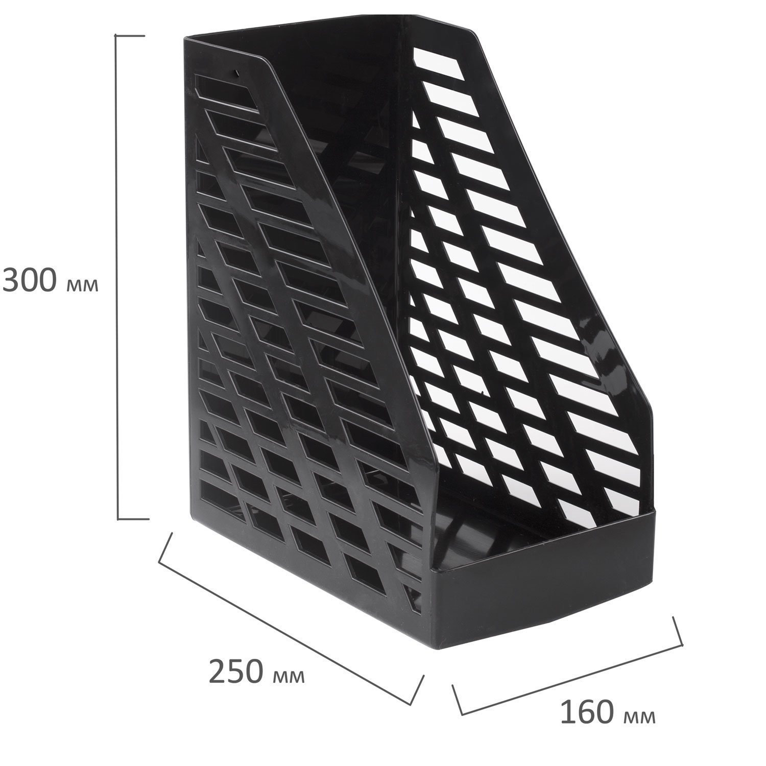Выполнен в черном цвете, с одним отделением предназначен для хранения каталогов и папок. Представляет собой прочную устойчивую неразборную конструкцию с цельнолитыми сетчатыми боковыми стенками. Размеры: высота - 300 мм, ширина - 160 мм, глубина - 250 мм.