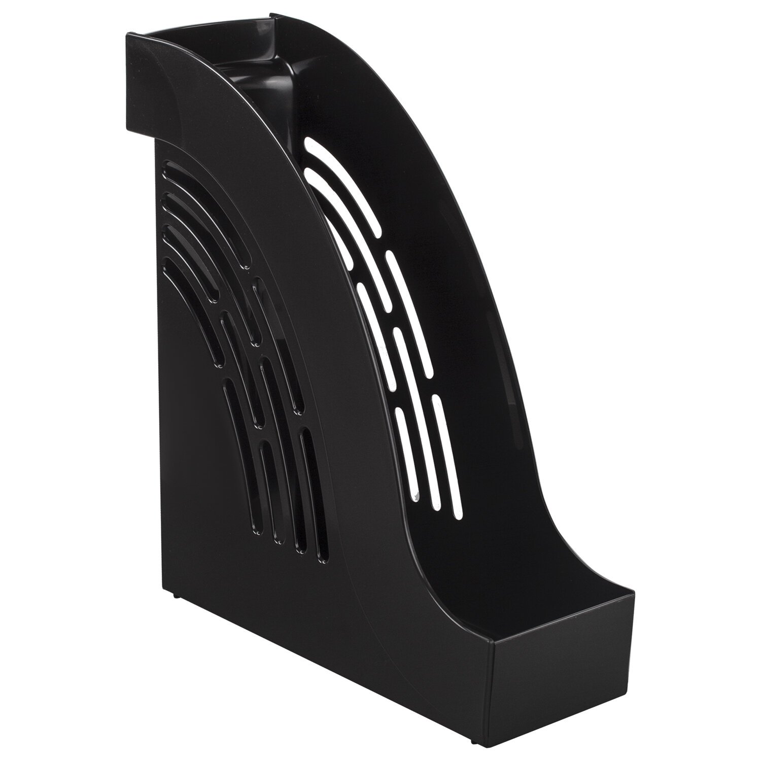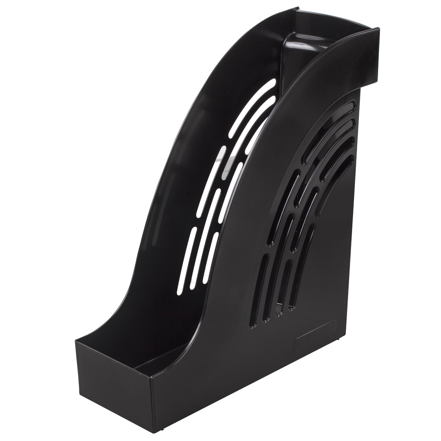 Отлично подходит для хранения бумажной продукции формата А4 на столе или в шкафу. Изготовлен из полистирола черного цвета. Имеется табличка для маркировки. Одно вместительное отделение шириной 95 мм. Устойчивая конструкция. Размер - 255х290 мм.