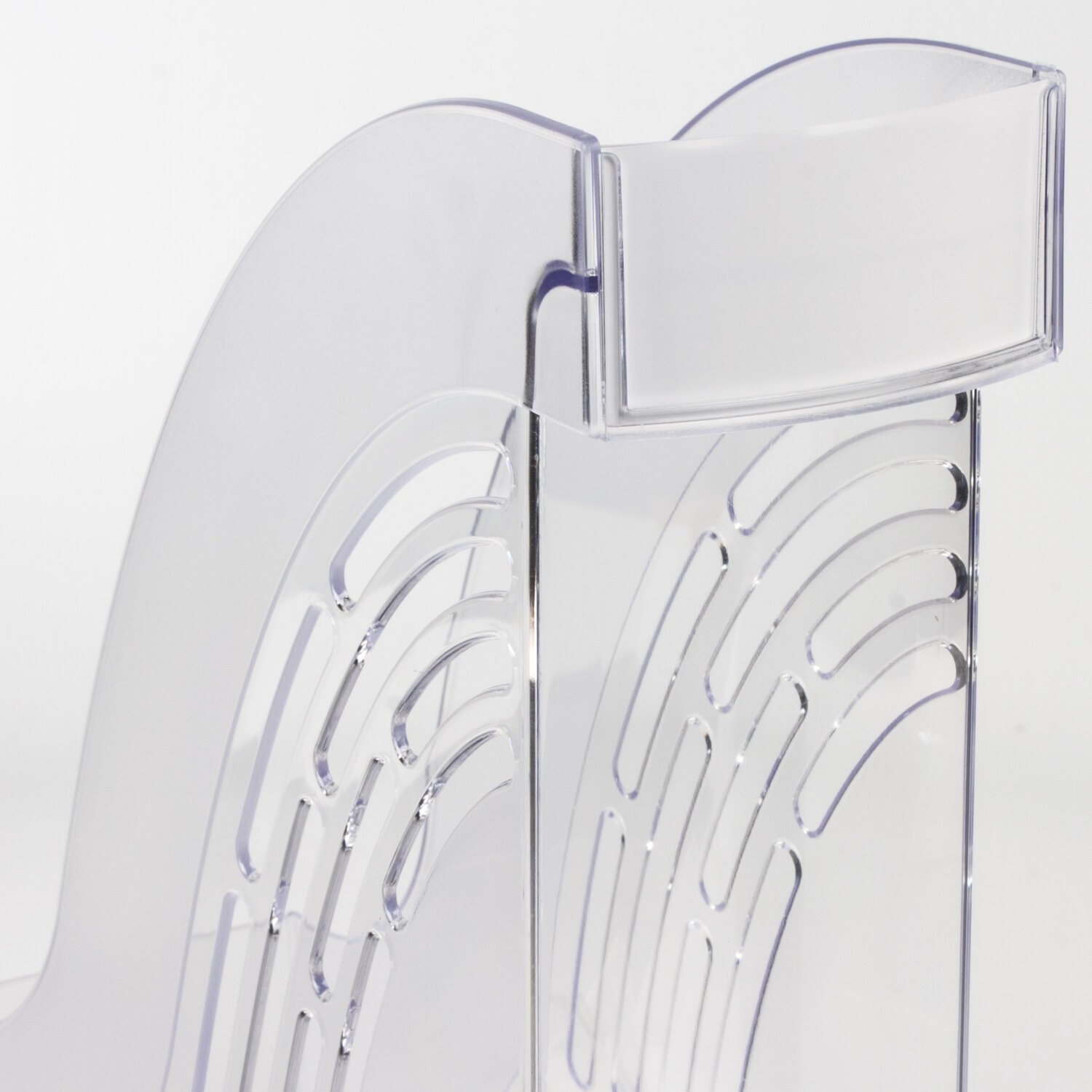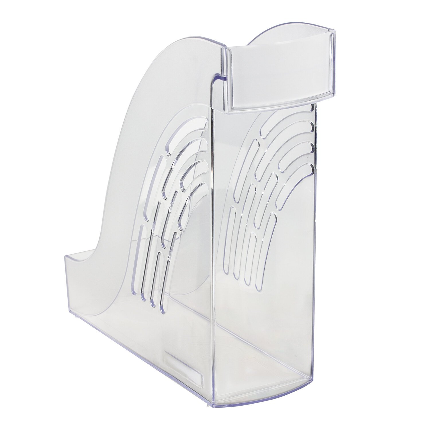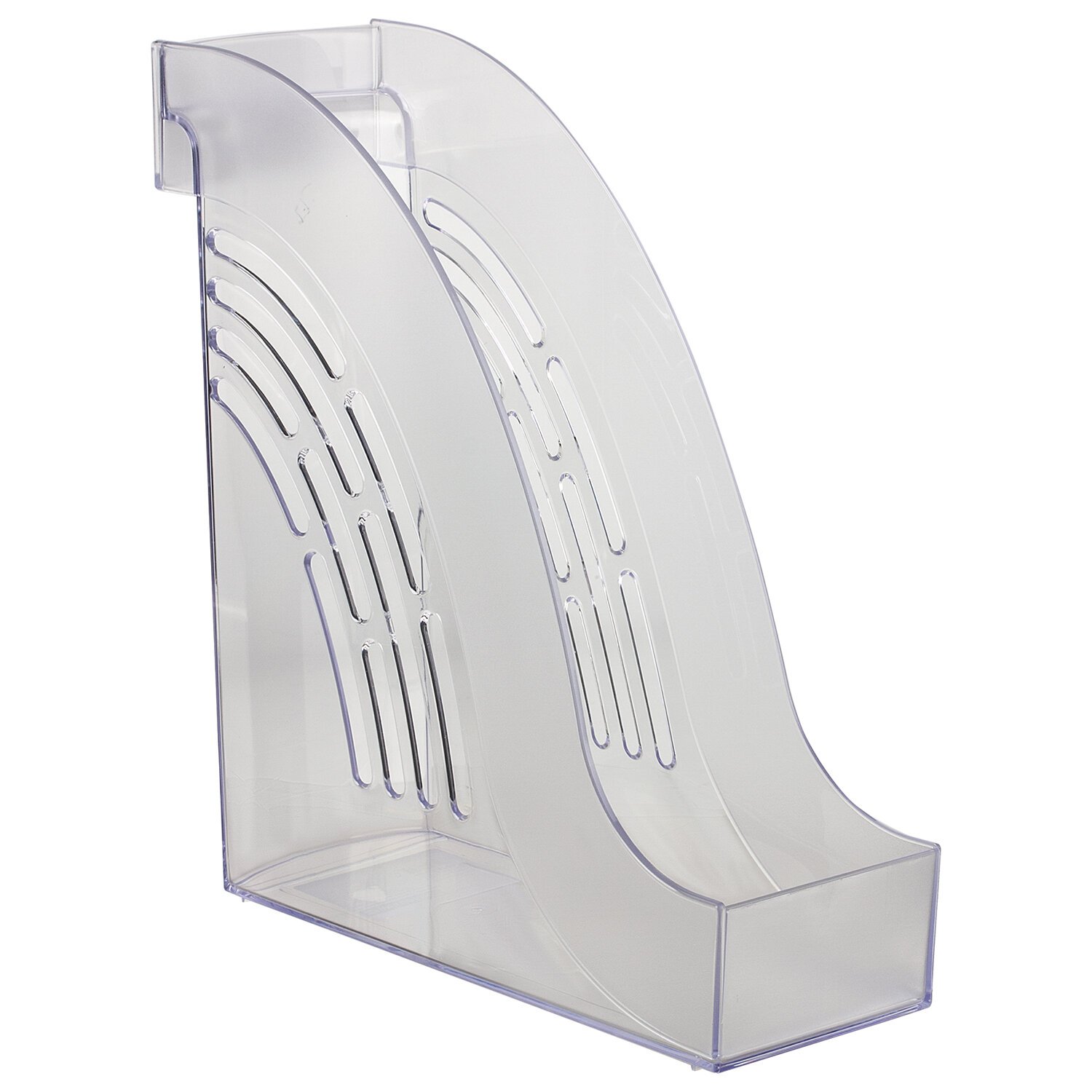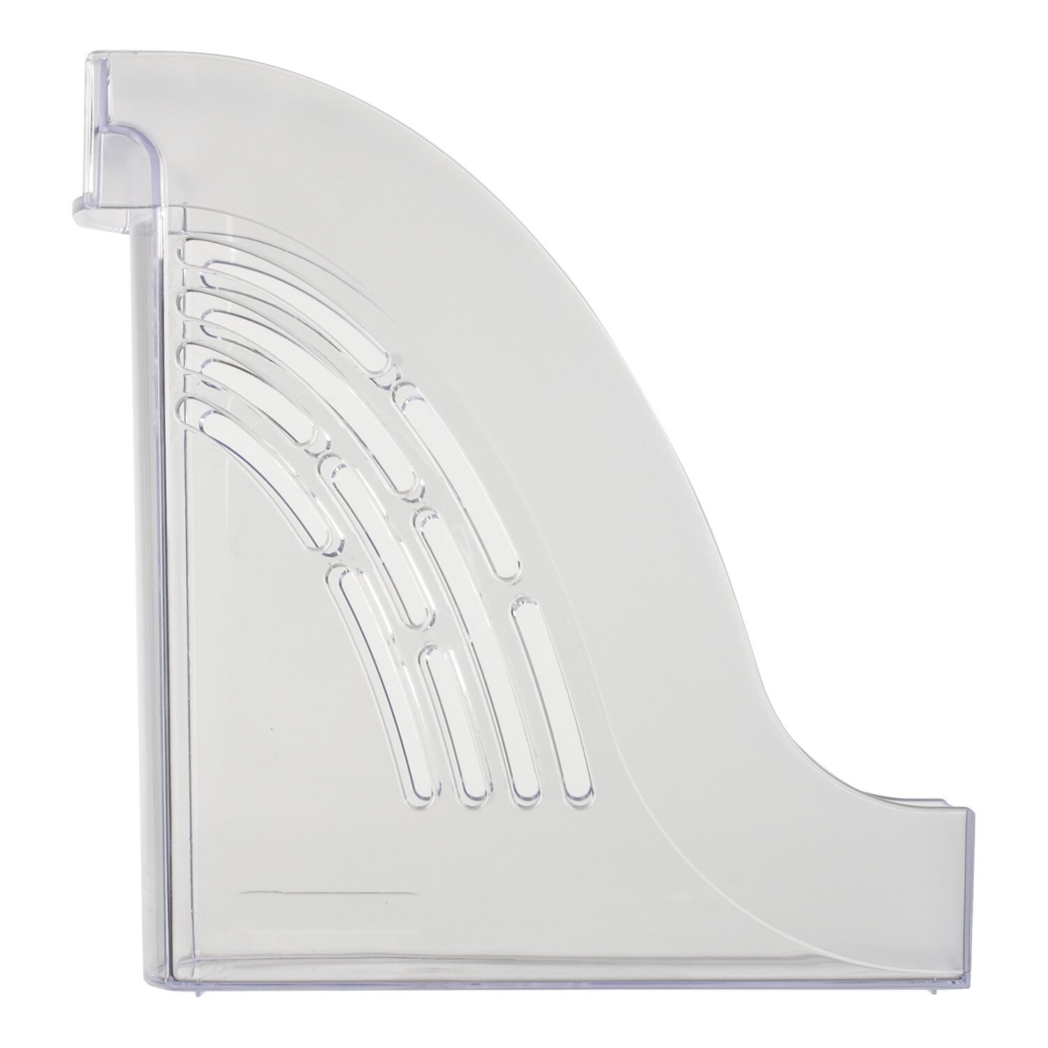 Отлично подходит для хранения бумажной продукции формата А4 на столе или в шкафу. Изготовлен из полистирола прозрачного цвета. Имеется табличка для маркировки. Одно вместительное отделение шириной 95 мм. Устойчивая конструкция. Размер - 255х290 мм.