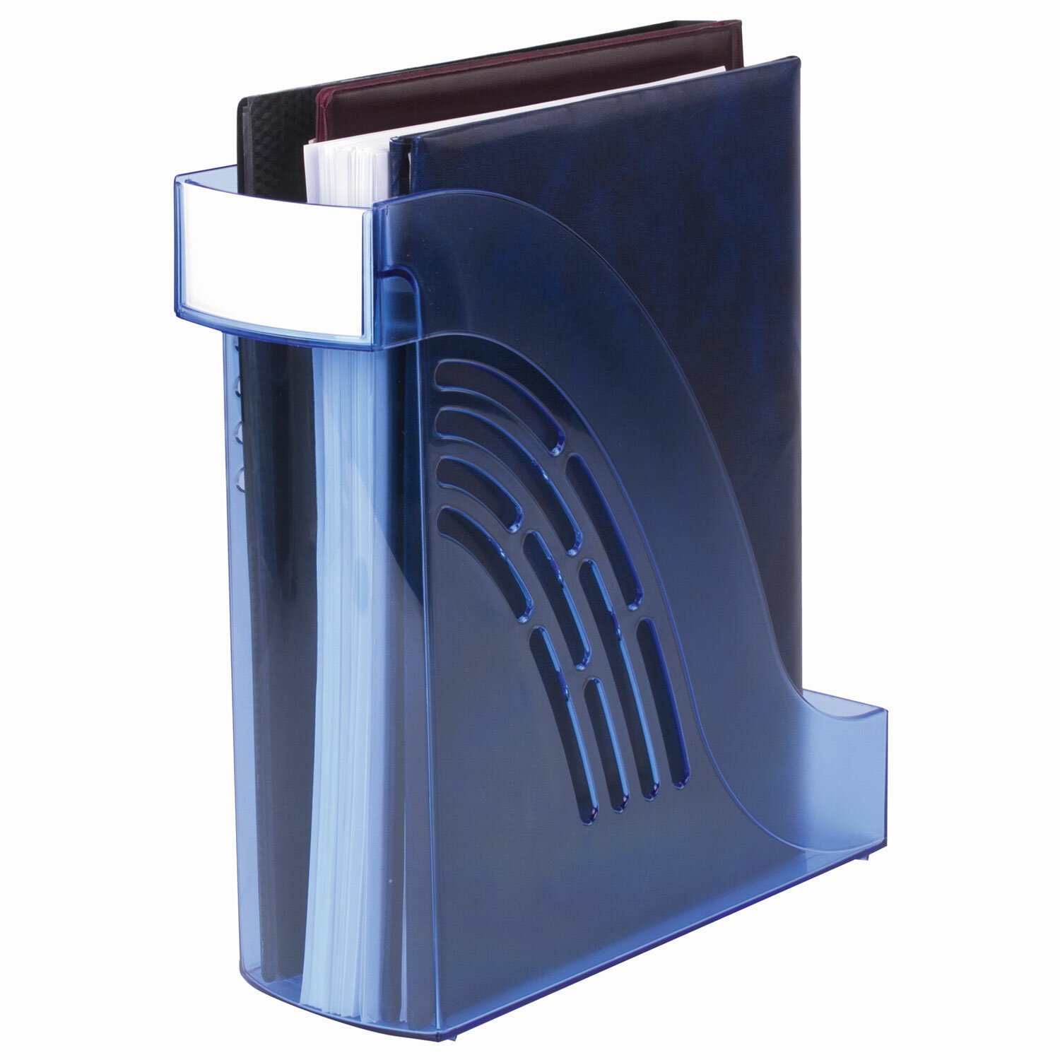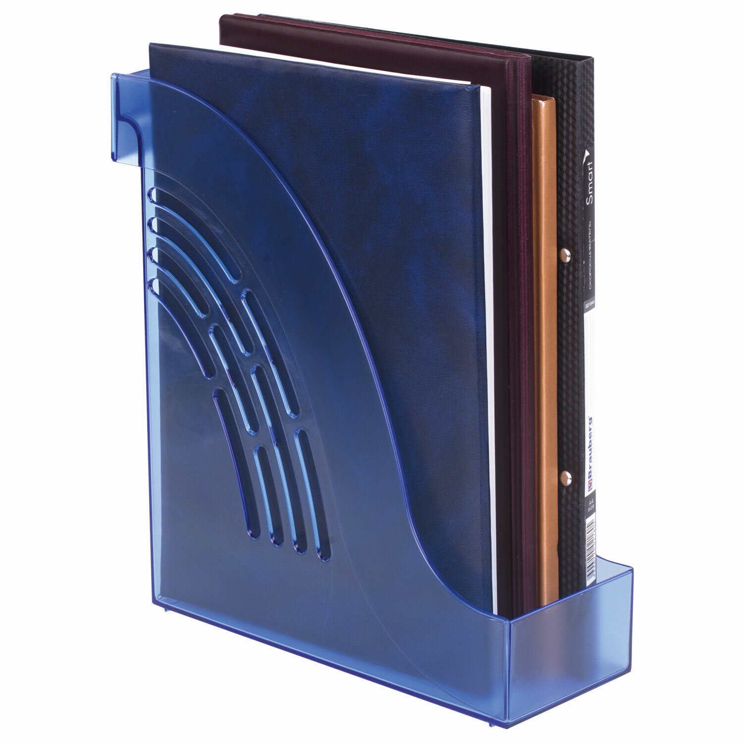 Лоток вертикальный для бумаг BRAUBERG "Office", 255х95х290 мм, тонированный синий, 237232
