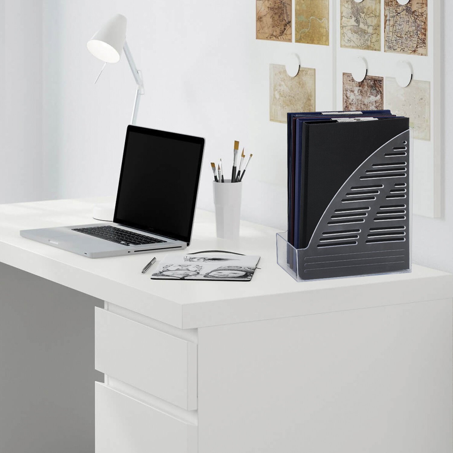 Изготовлен из прочного полистирола и имеет 1 отделение. Размер (ГхШхВ) - 245х70х295 мм. Обладает прочной сетчатой поверхностью и устойчивой конструкцией, благодаря которой является удобным для хранения объемных документов.