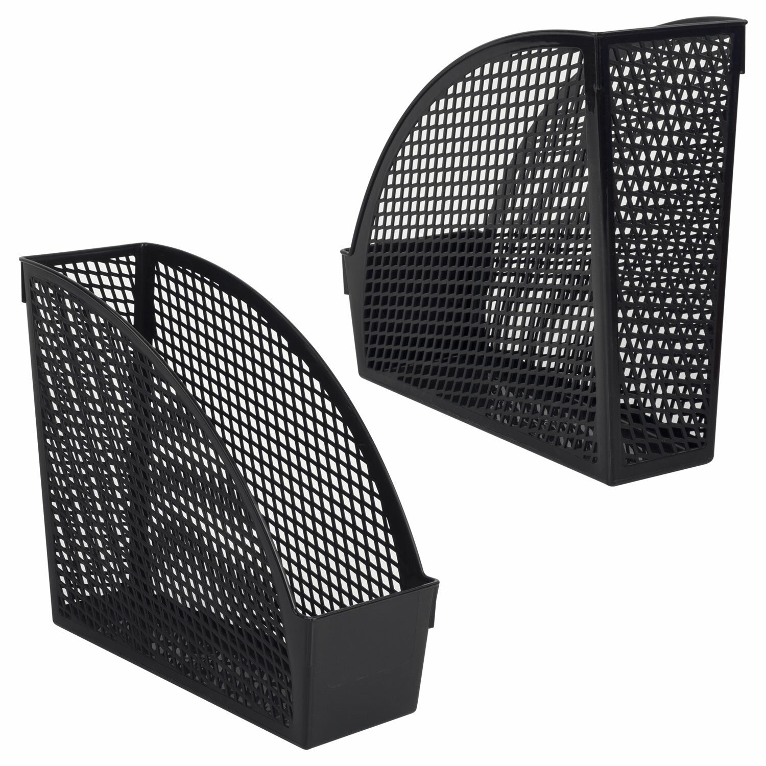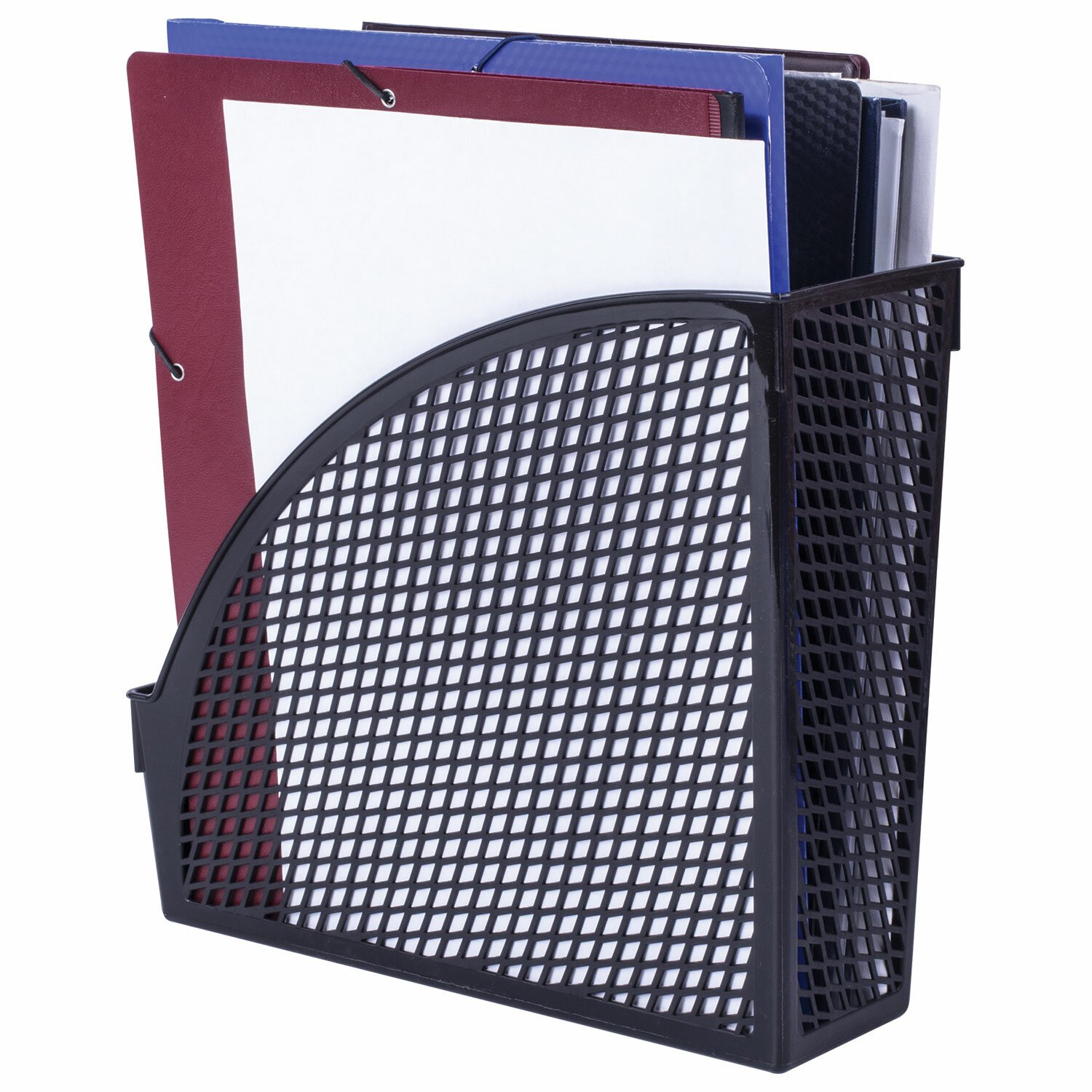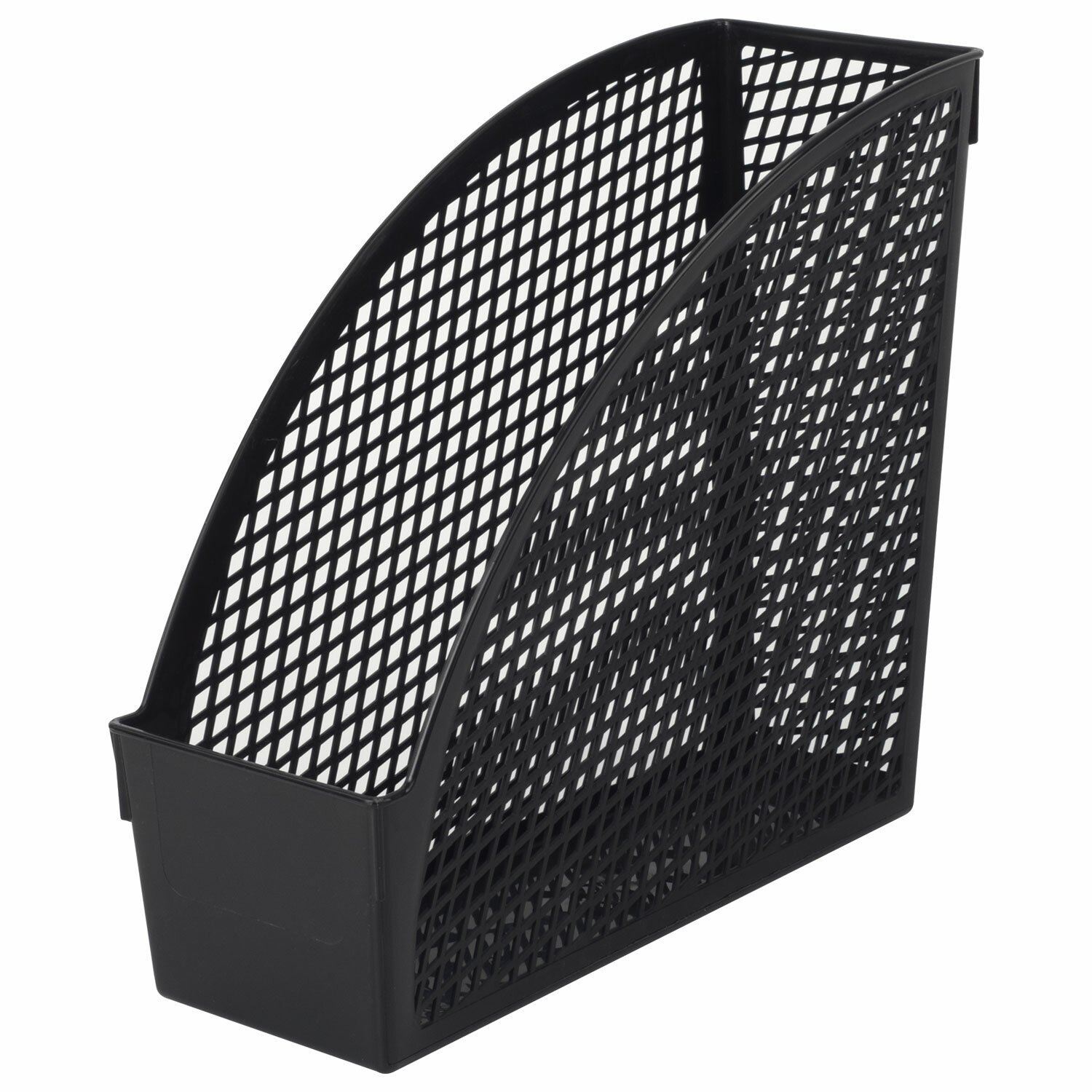 Выполнен в черном цвете из полипропилена с одним отделением. Предназначен для хранения бумаг формата А4. Представляет собой устойчивую неразборную конструкцию с прочной сетчатой поверхностью. Размеры: высота - 270 мм, ширина - 100 мм, глубина - 250 мм.