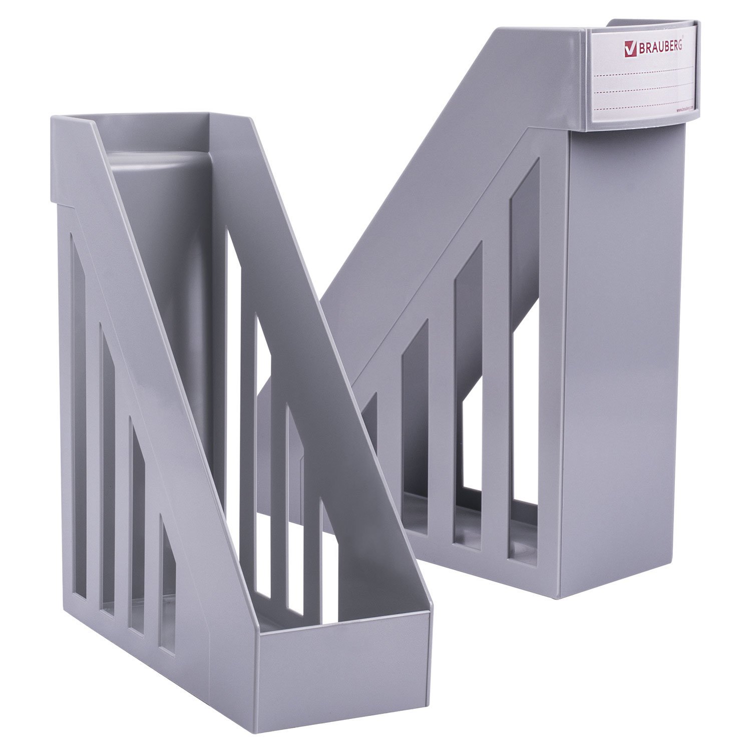 Лоток вертикальный для бумаг BRAUBERG "Basic", 265х100х285 мм, серый, 237010