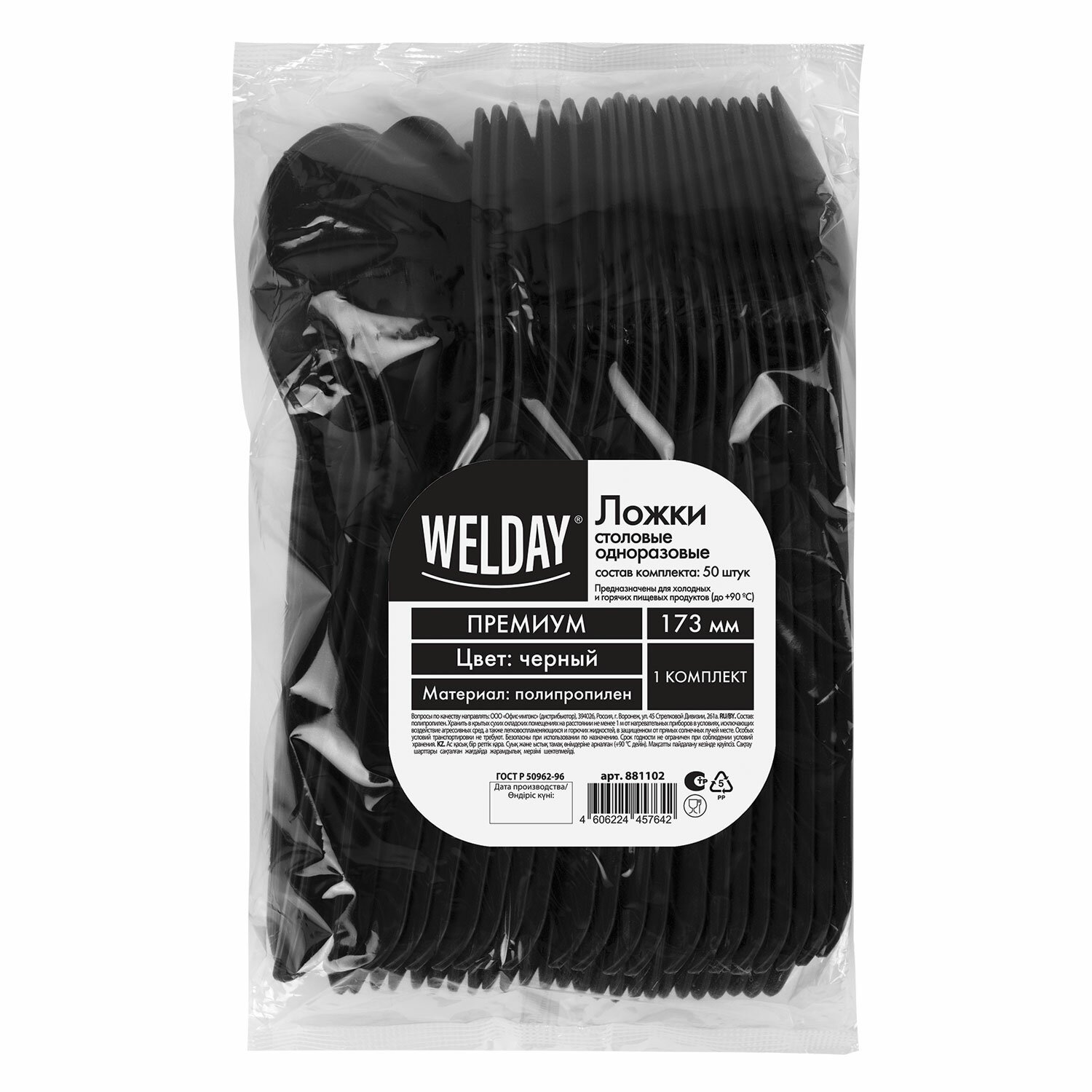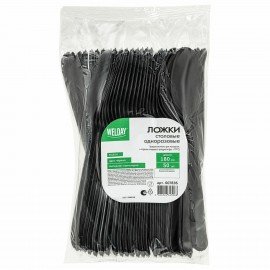 Ложка столовая одноразовая полипропиленовая 173 мм черная, КОМПЛЕКТ 50 шт., ПРЕМИУМ, WELDAY, 881102