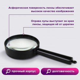 Лупа просмотровая BRAUBERG, диаметр 90 мм, увеличение 3, 451801