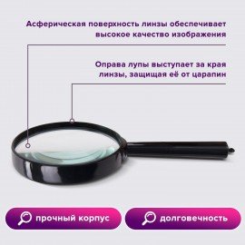 Лупа просмотровая BRAUBERG, диаметр 90 мм, увеличение 3, 451801