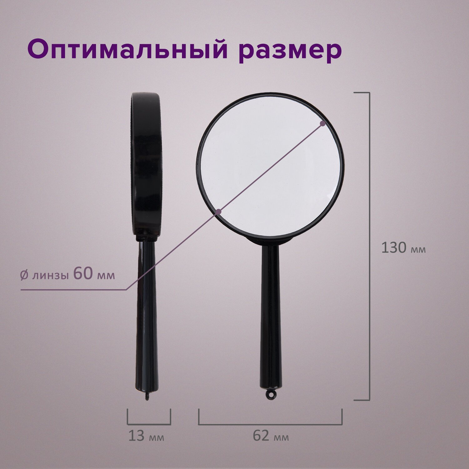Лупа просмотровая BRAUBERG, диаметр 60 мм, увеличение 6, 451799