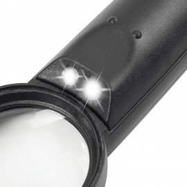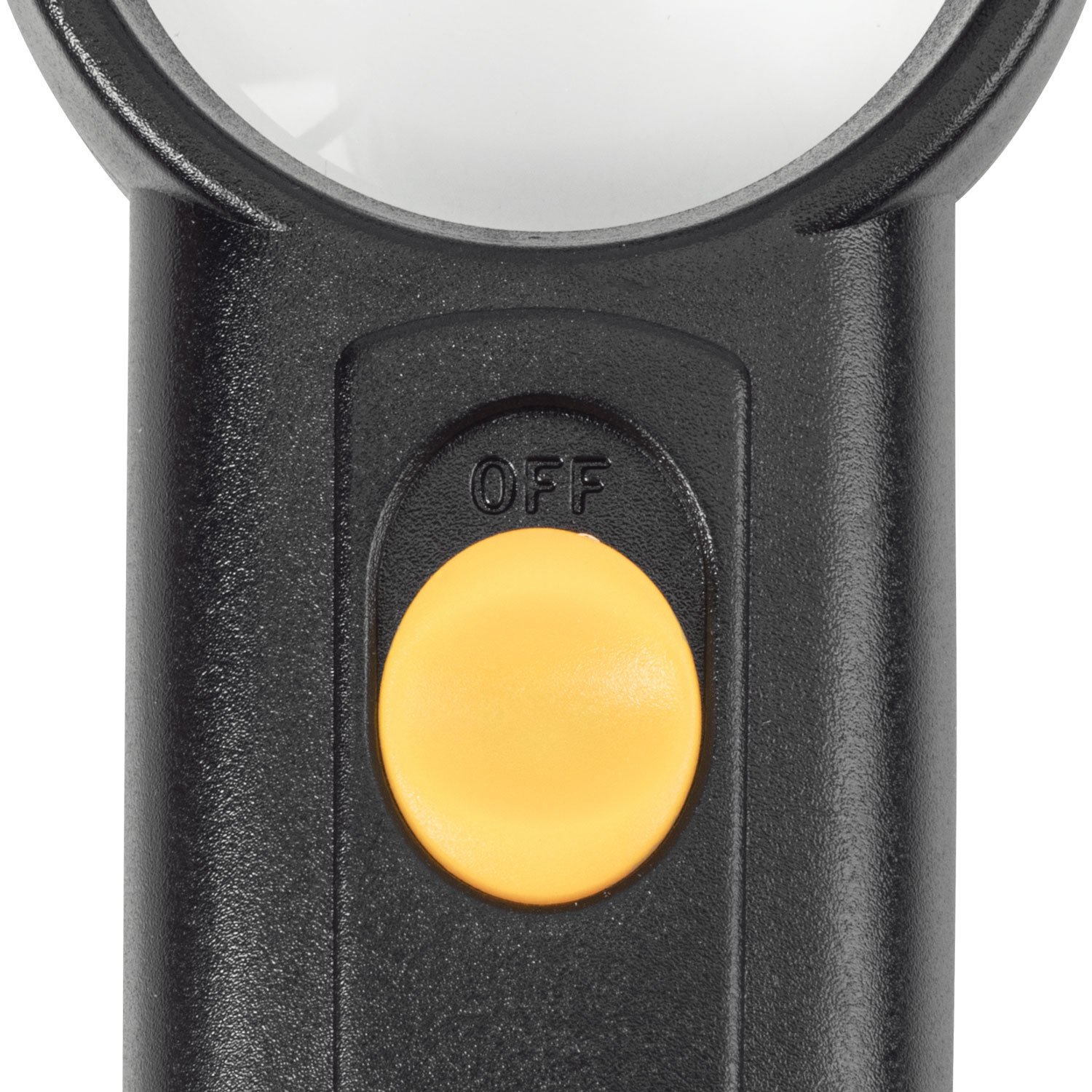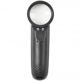 Корпус выполнен из пластика, а линза - из стекла. Асферическая поверхность линзы обеспечивает высокое качество изображения при увеличении мелких объектов и изображений. Диаметр линзы - 37 мм. Производит восьмикратное увеличение. Оснащена светодиодной подсветкой. Оправа лупы выступает за края линзы, защищая её от царапин. Снабжена удобной пластиковой ручкой. Питание - 3 батарейки типа AАA/1,5В (в комплект не входят).