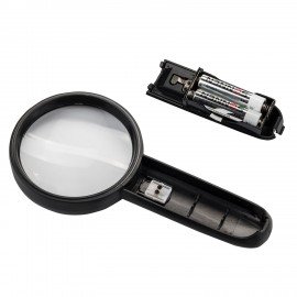 Производит трехкратное увеличение. Оснащена светодиодной подсветкой. Оправа лупы выступает за края линзы, защищая её от царапин. Снабжена удобной пластиковой ручкой. Питание - 3 батарейки типа AАA/1,5В (в комплект не входят).