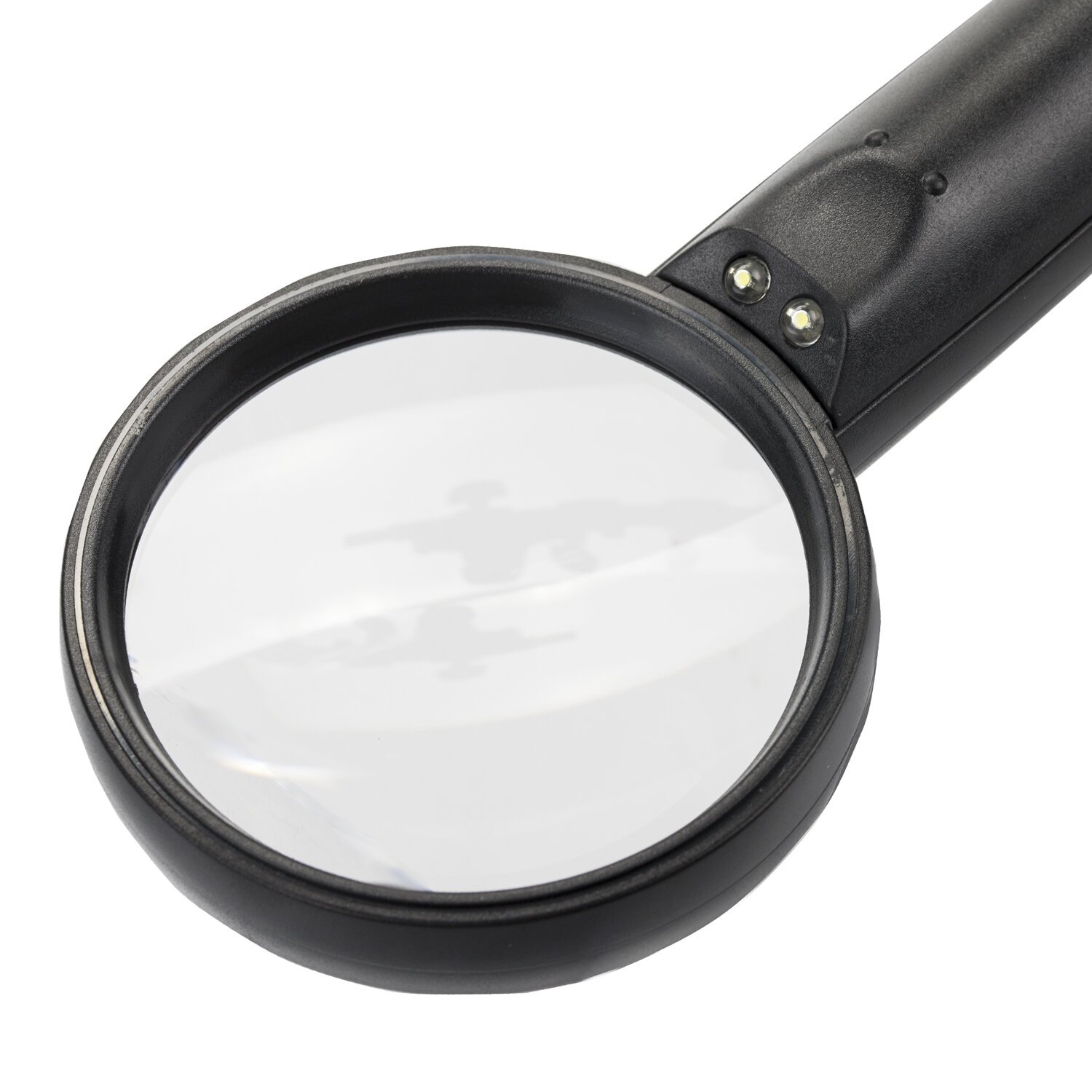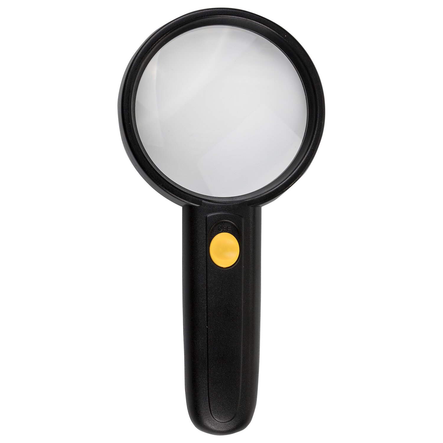 Лупа просмотровая BRAUBERG, С ПОДСВЕТКОЙ, диаметр 50 мм, увеличение 5, корпус черный, 454128