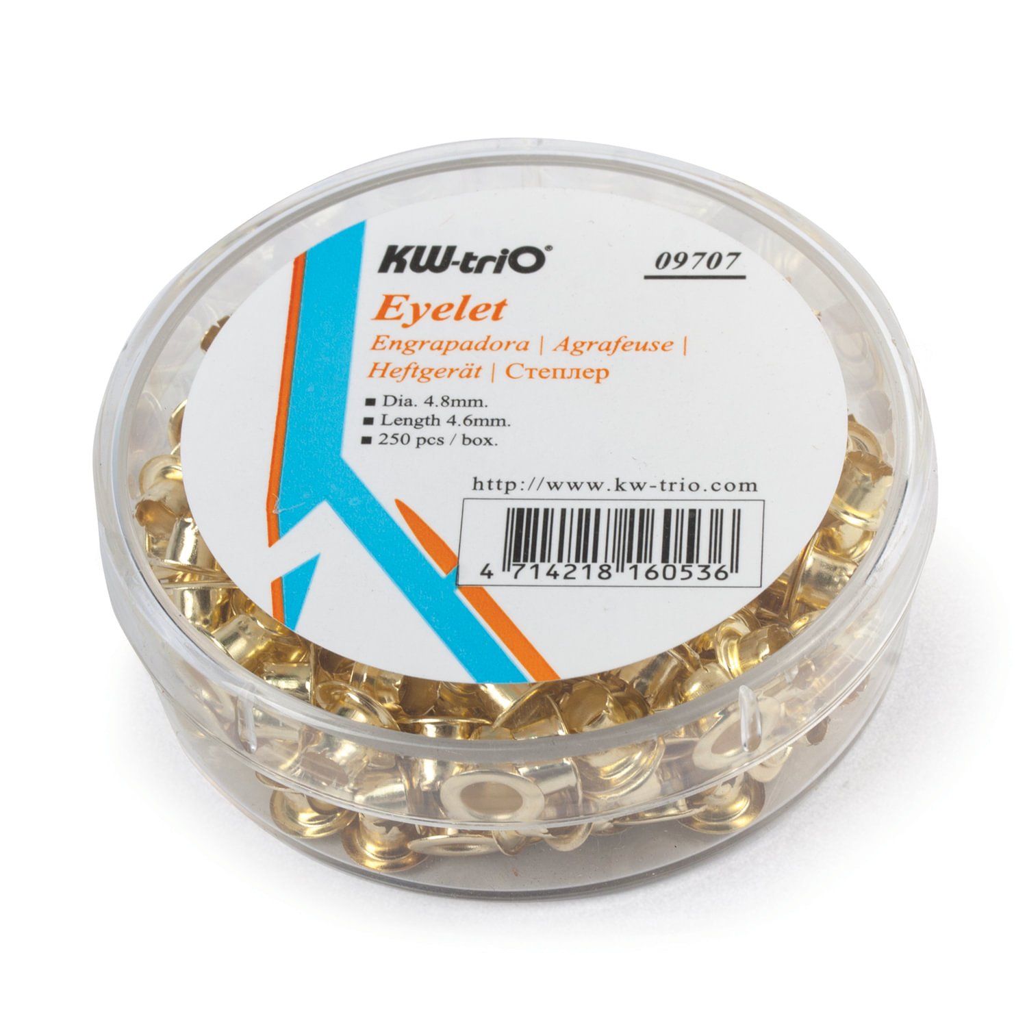 Люверсы омедненные KW-trio, комплект 250 шт., внутренний диаметр 4,8 мм, длина 4,6 мм, цвет золото, 9707, -9707