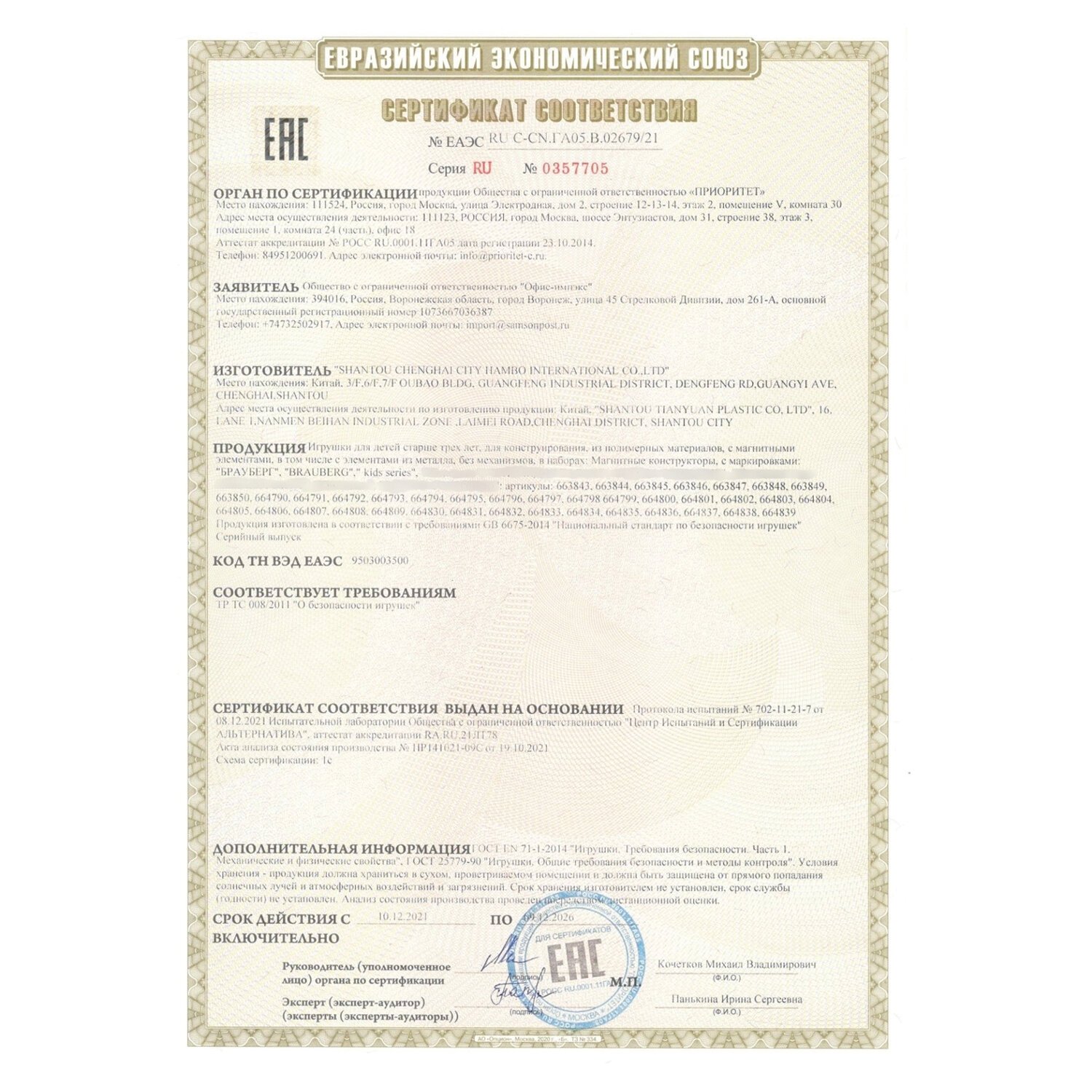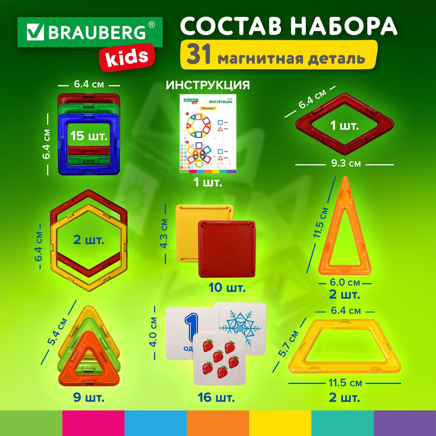 Набор совместим с другими наборами магнитного конструктора BRAUBERG KIDS.