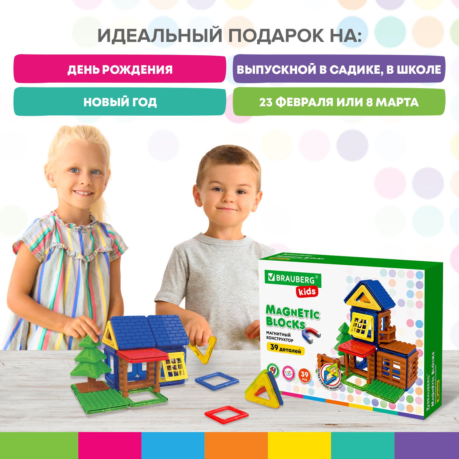 Магнитный конструктор MAGNETIC BUILD BLOCKS-39 "Построй дом", 39 деталей, BRAUBERG KIDS, 663849