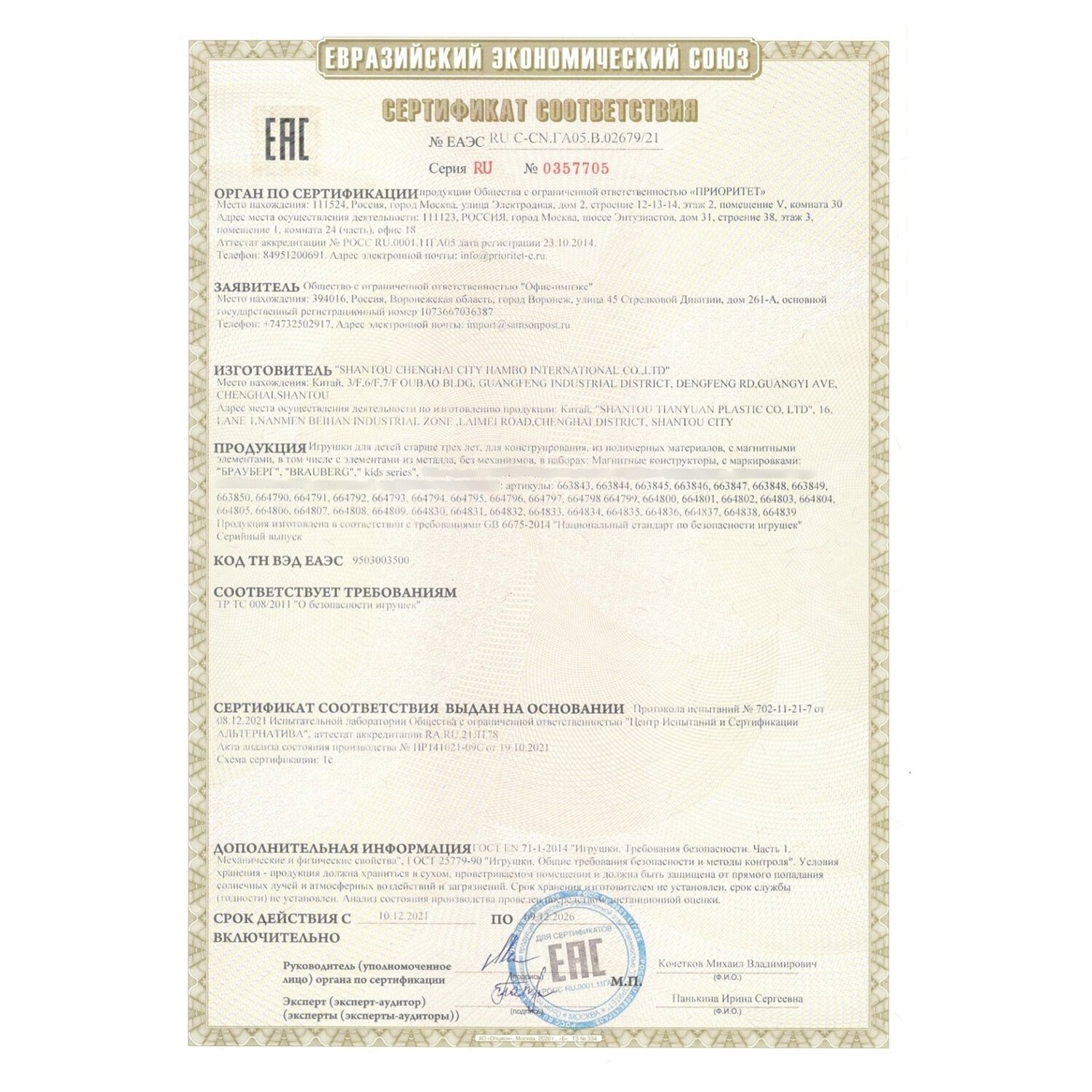 Набор совместим с другими наборами магнитного конструктора BRAUBERG KIDS.