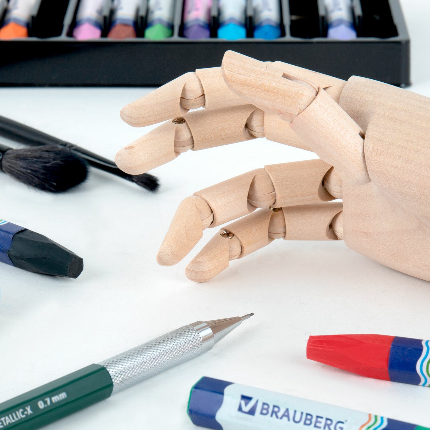 Деревянный манекен BRAUBERG ART "CLASSIC" воспроизводит антропометрическую форму правой руки. Он используется художниками как наглядное пособие для зарисовок.