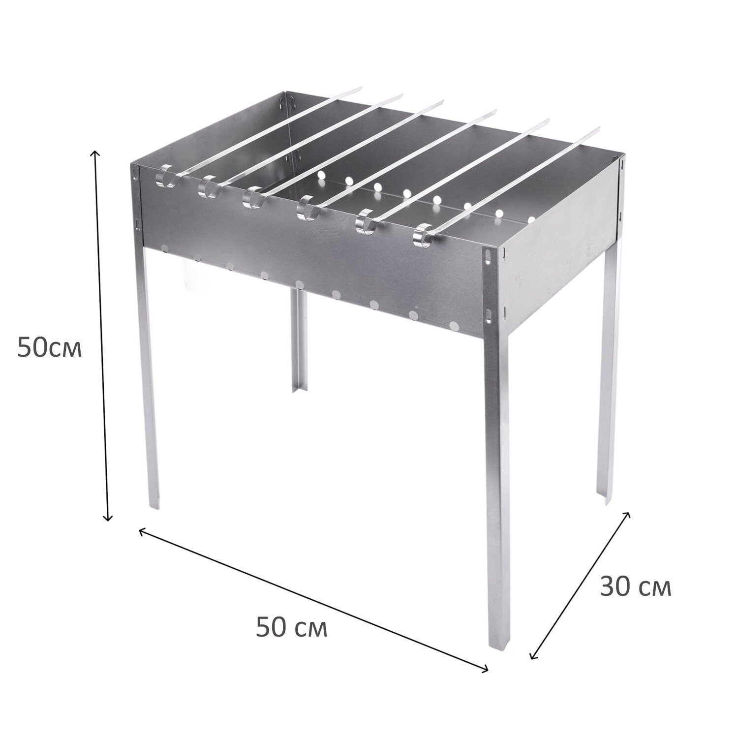 Мангал сборный размер 500х300х500 мм, + 6 шампуров, в коробке, хххххх, 701728