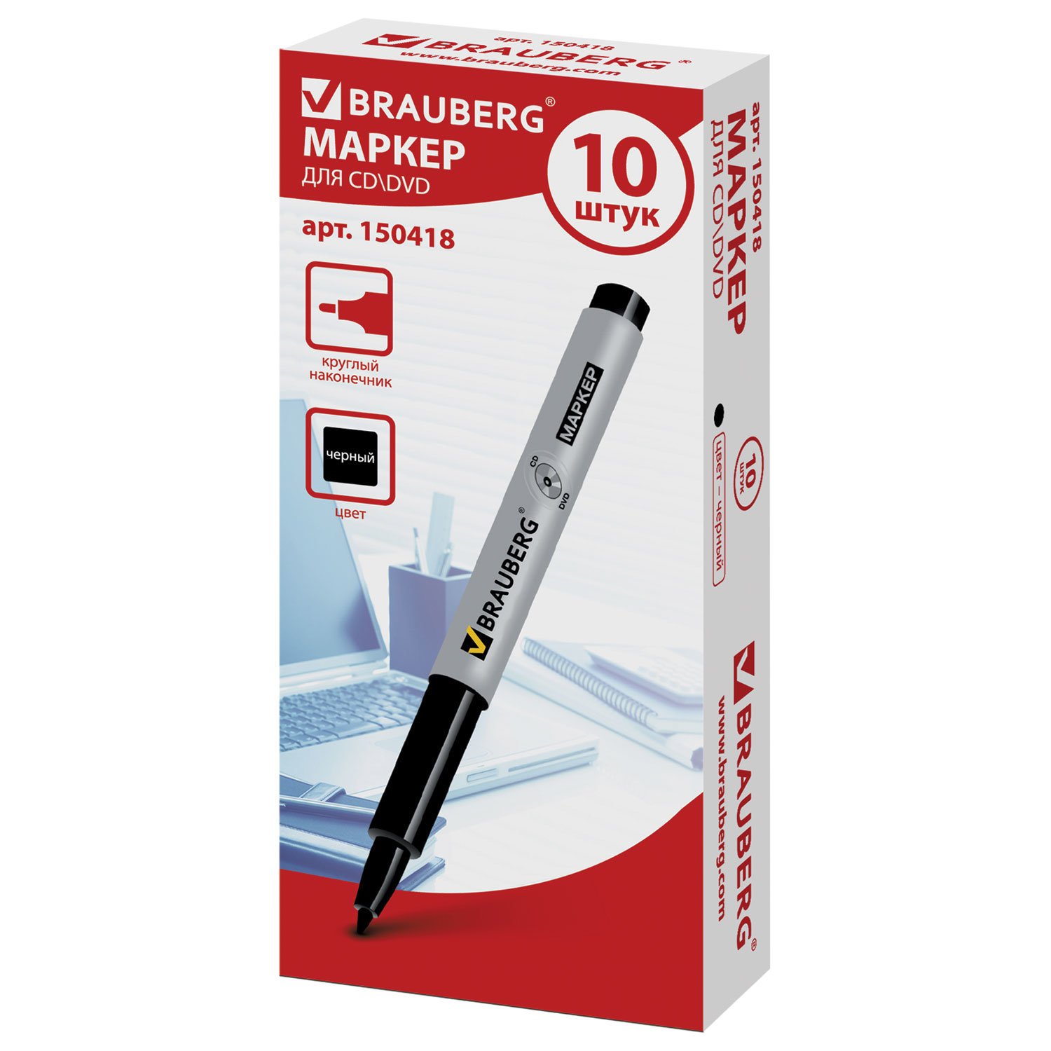 Маркер для CD и DVD BRAUBERG, ЧЕРНЫЙ, тонкий наконечник, 1 мм, 150418