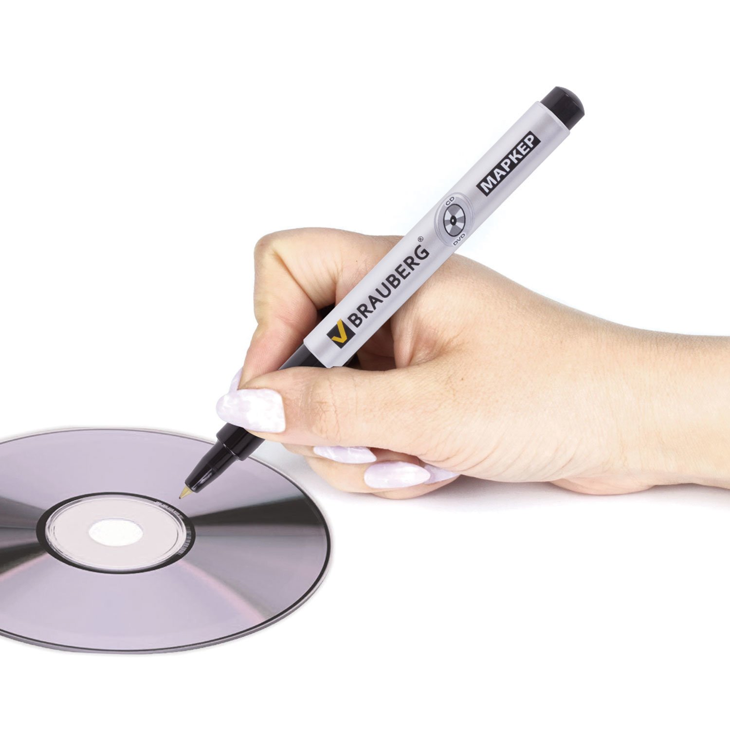 Маркер для CD и DVD BRAUBERG, ЧЕРНЫЙ, супертонкий металлический наконечник, 0,5 мм, 150512