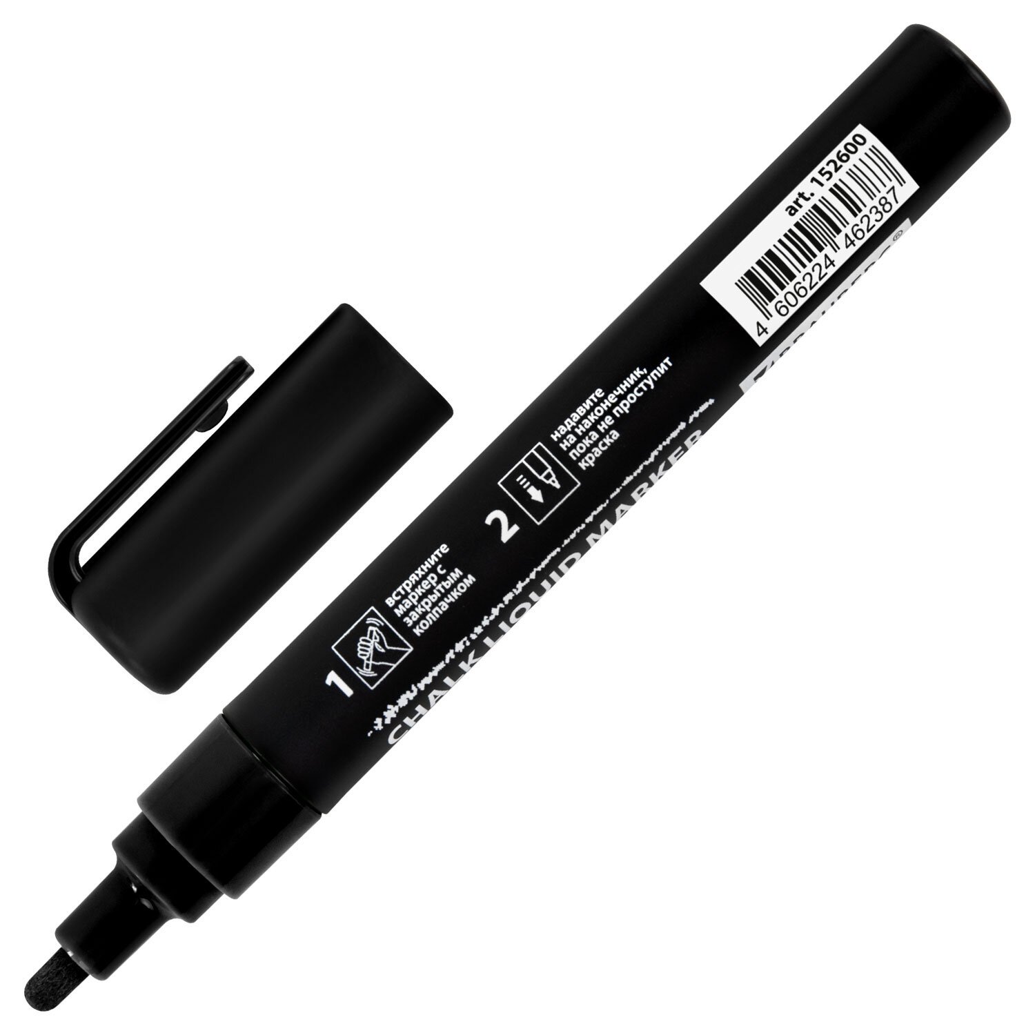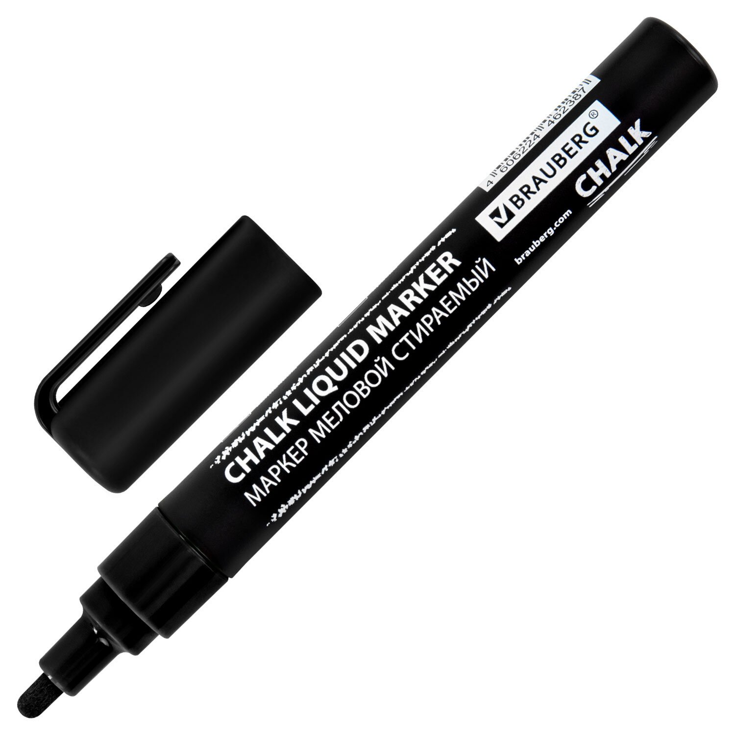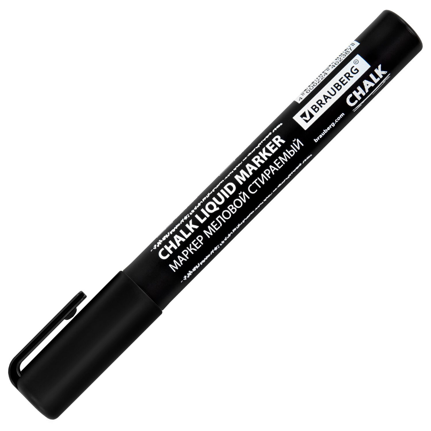 Маркер меловой CHALK LIQUID MARKER, ЧЕРНЫЙ, 3 мм, стираемый, BRAUBERG "CHALK", 152600