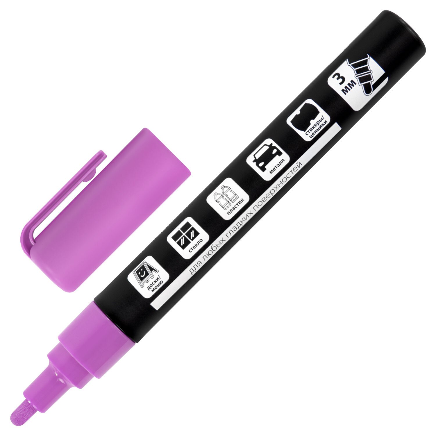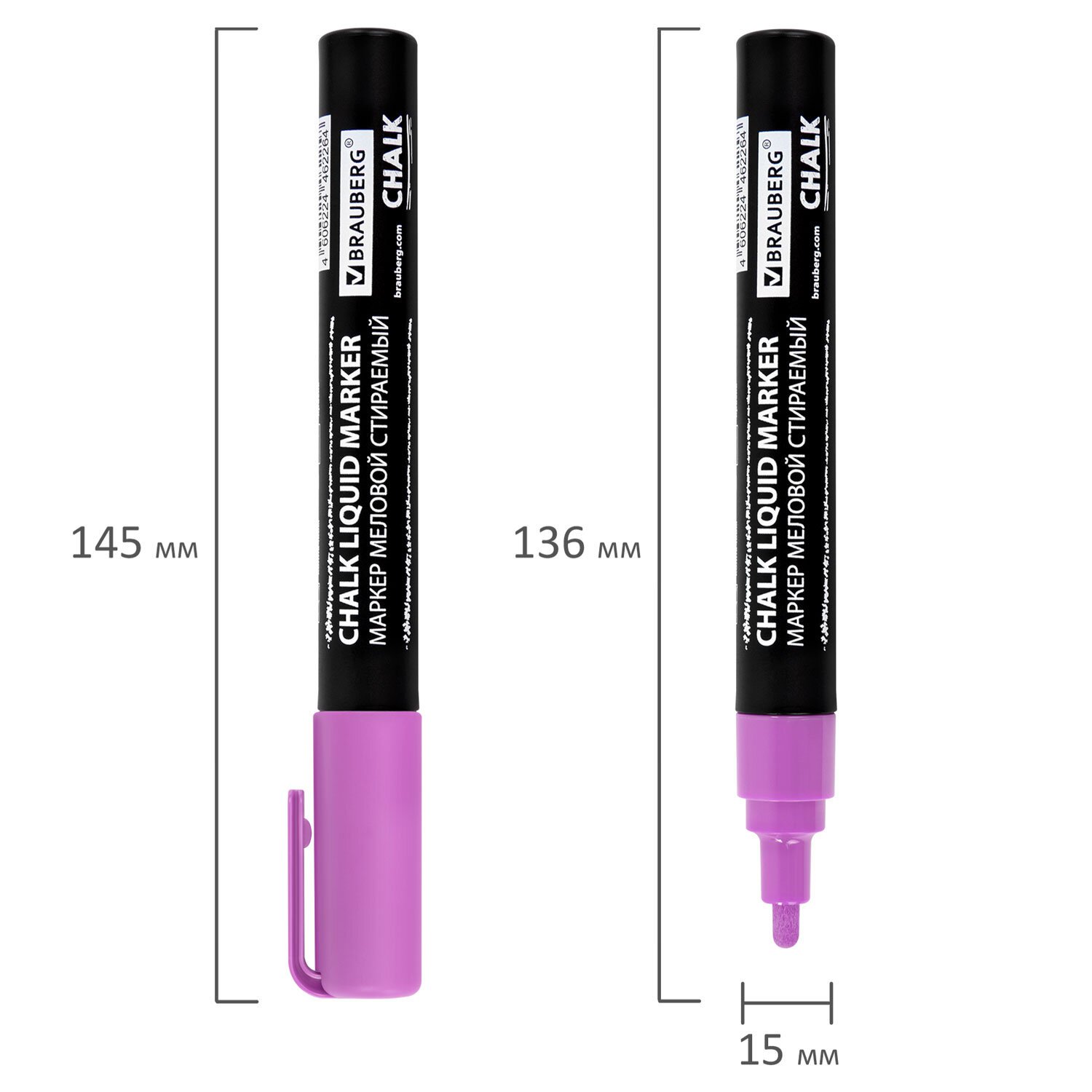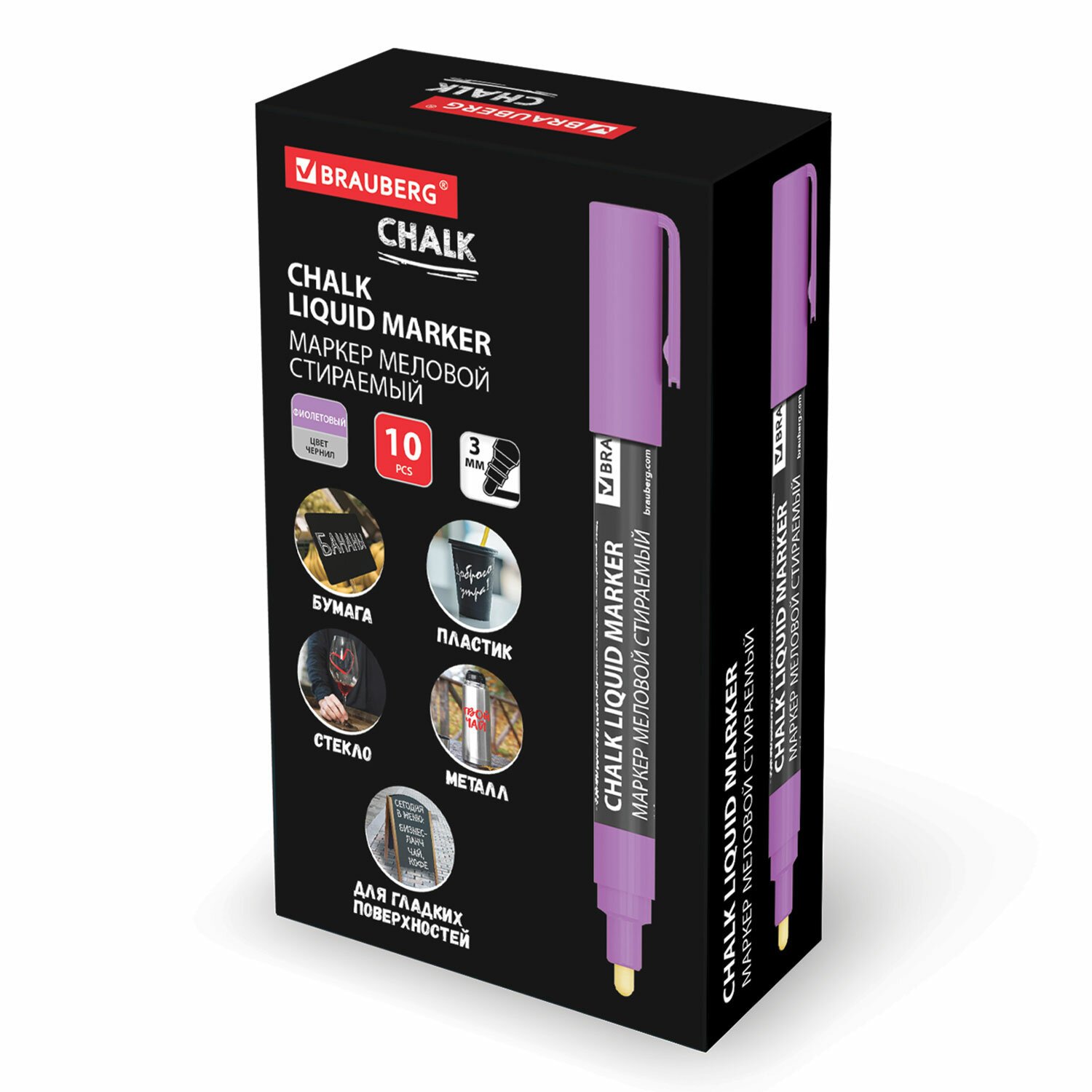Маркер меловой CHALK LIQUID MARKER, ФИОЛЕТОВЫЙ, 3 мм, стираемый, BRAUBERG "CHALK", 152588