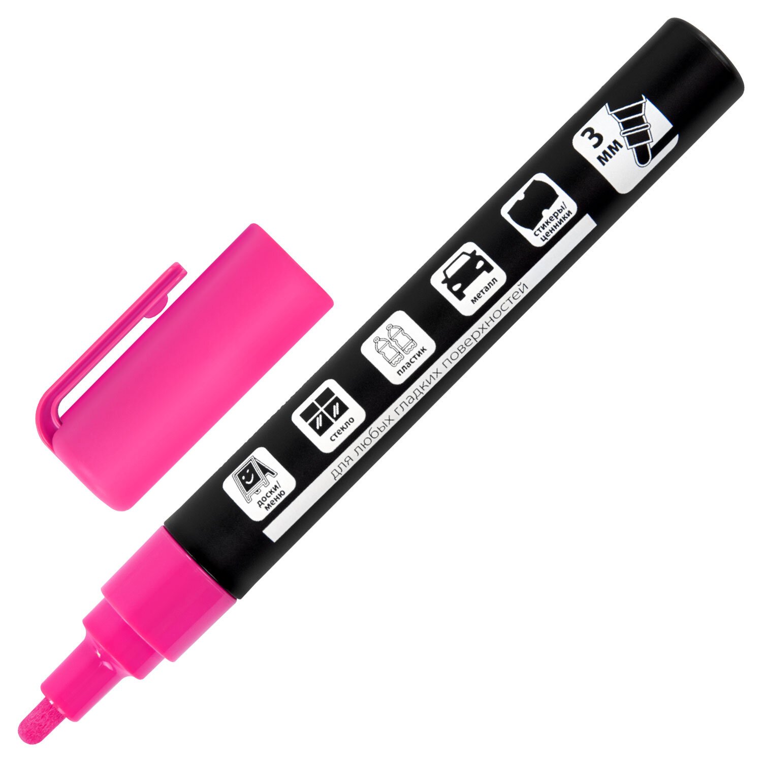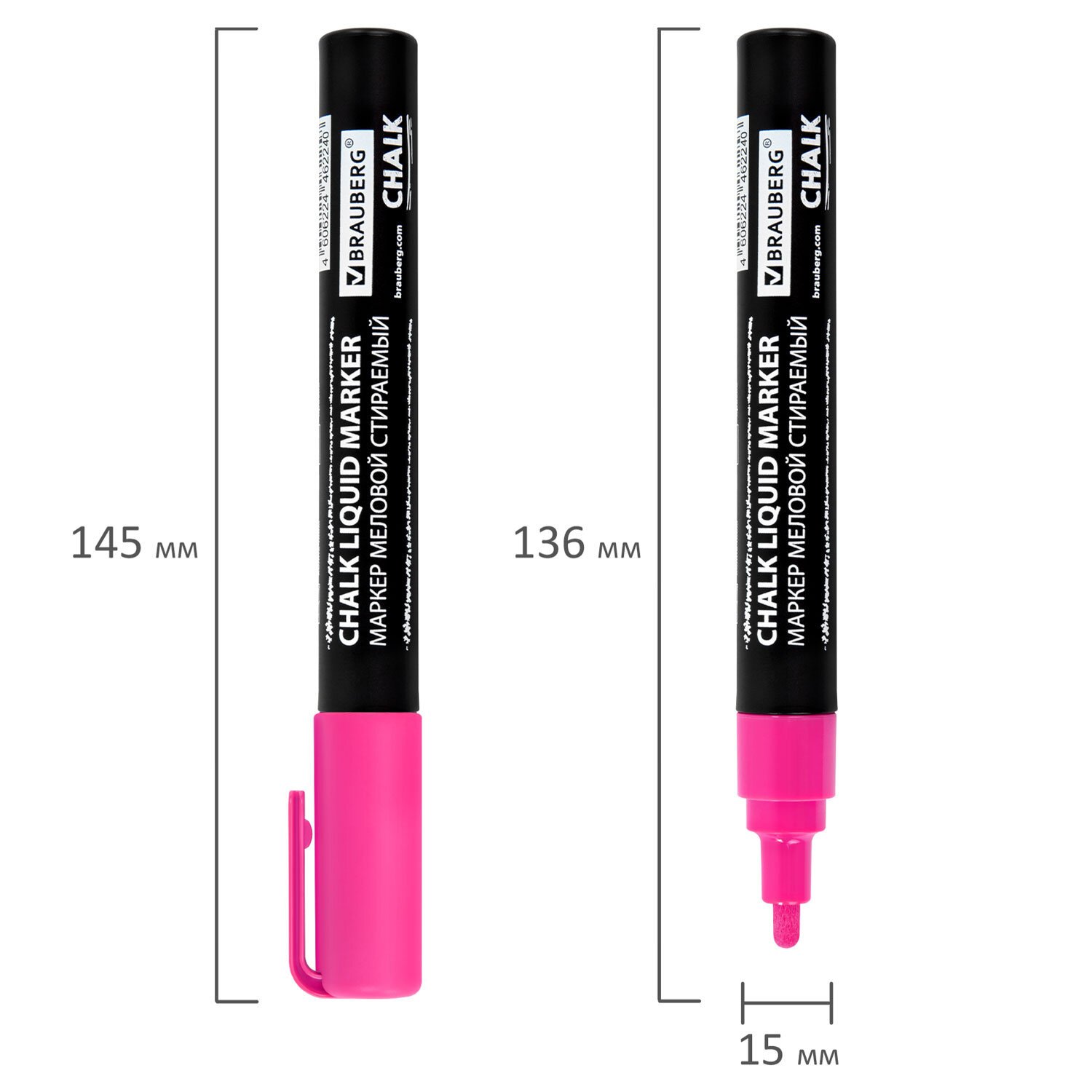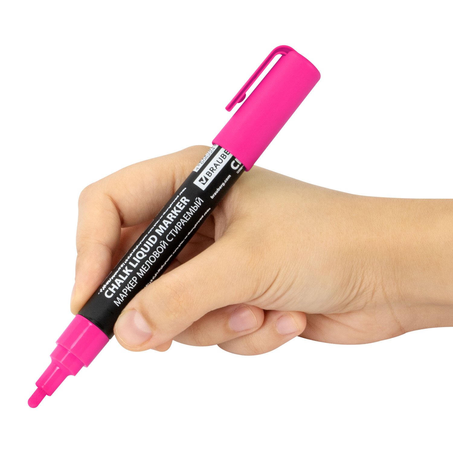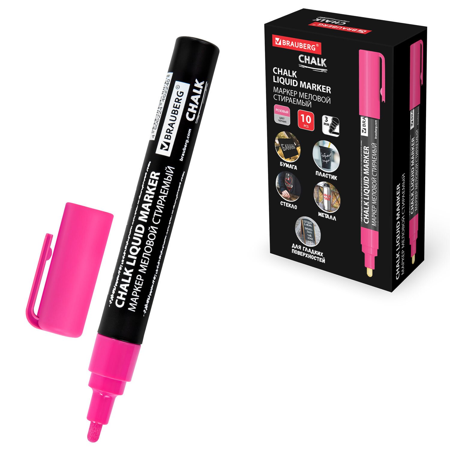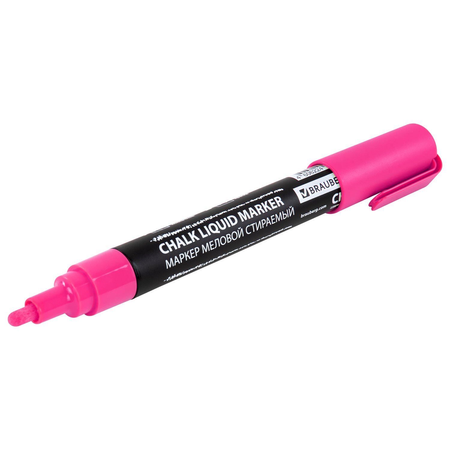 Маркер меловой CHALK LIQUID MARKER, РОЗОВЫЙ, 3 мм, стираемый, BRAUBERG "CHALK", 152586