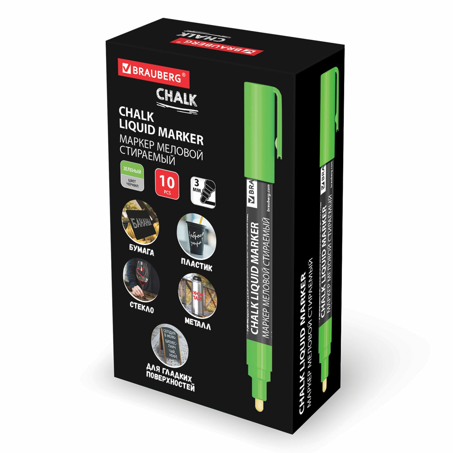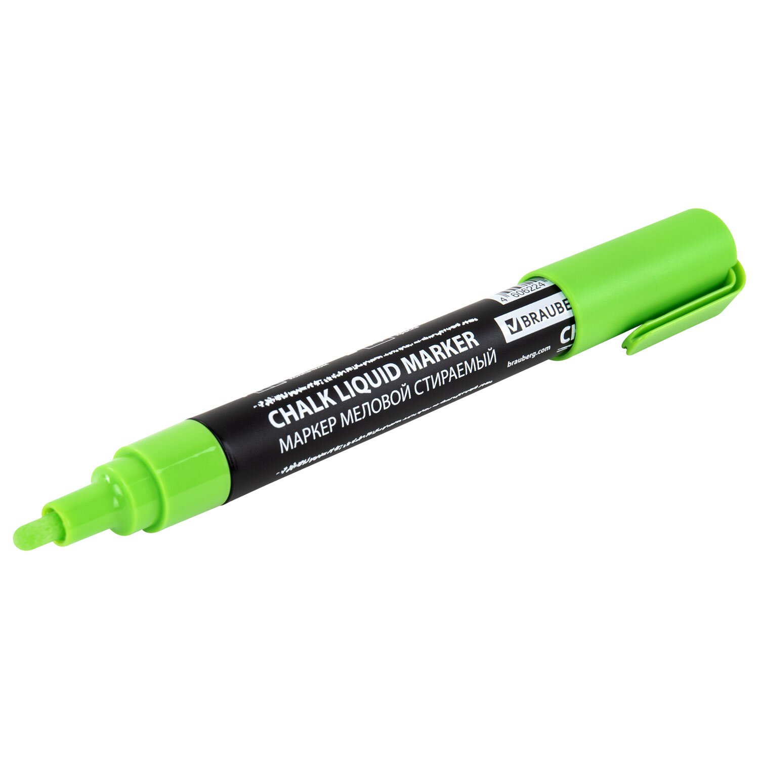 Маркер меловой CHALK LIQUID MARKER, ЗЕЛЕНЫЙ, 3 мм, стираемый, BRAUBERG "CHALK", 152587