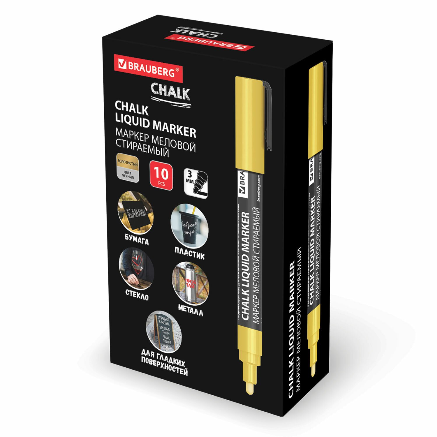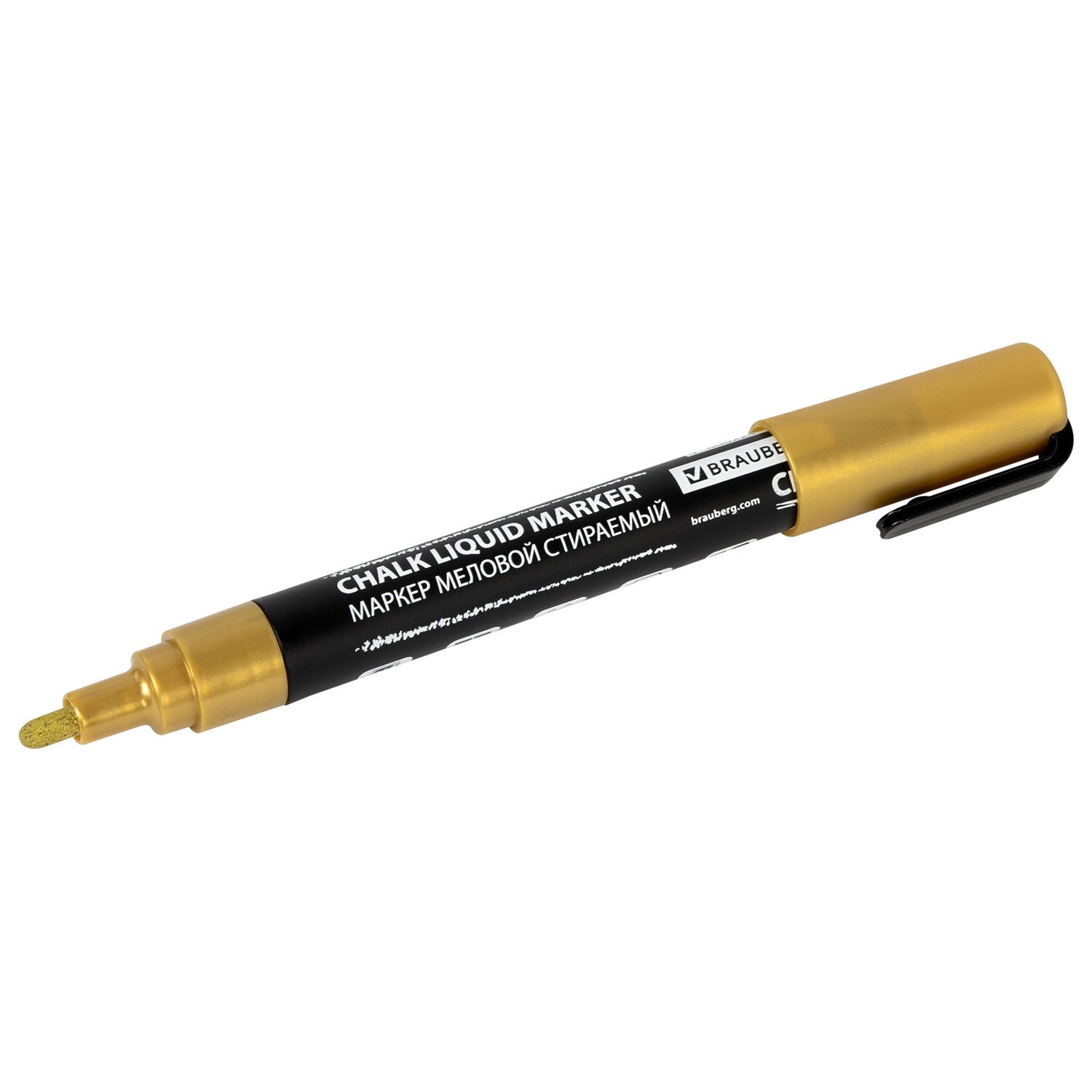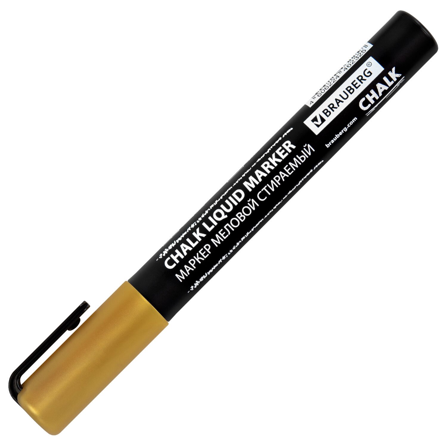 Маркер меловой CHALK LIQUID MARKER, ЗОЛОТИСТЫЙ, 3 мм, стираемый, BRAUBERG "CHALK", 152594