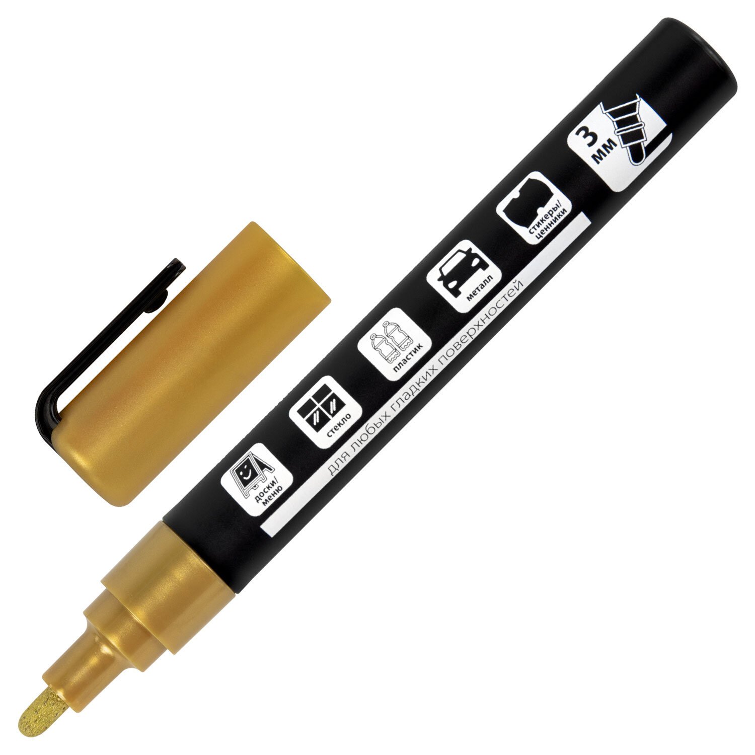 Маркер меловой "POP-ART" ЗОЛОТОЙ, 5 мм, ВЛАГОСТИРАЕМЫЙ, для гладких поверхностей, BRAUBERG, 152485