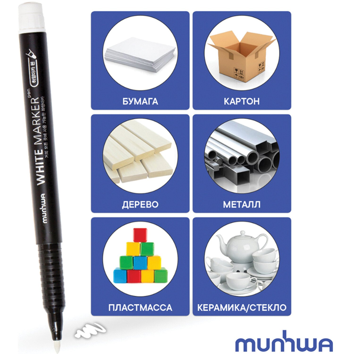 Маркер перманентный БЕЛЫЙ 1 мм, MUNHWA, WPM-05