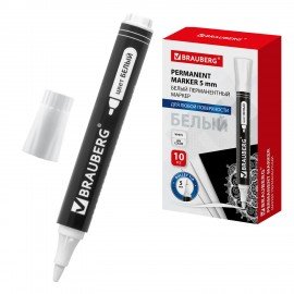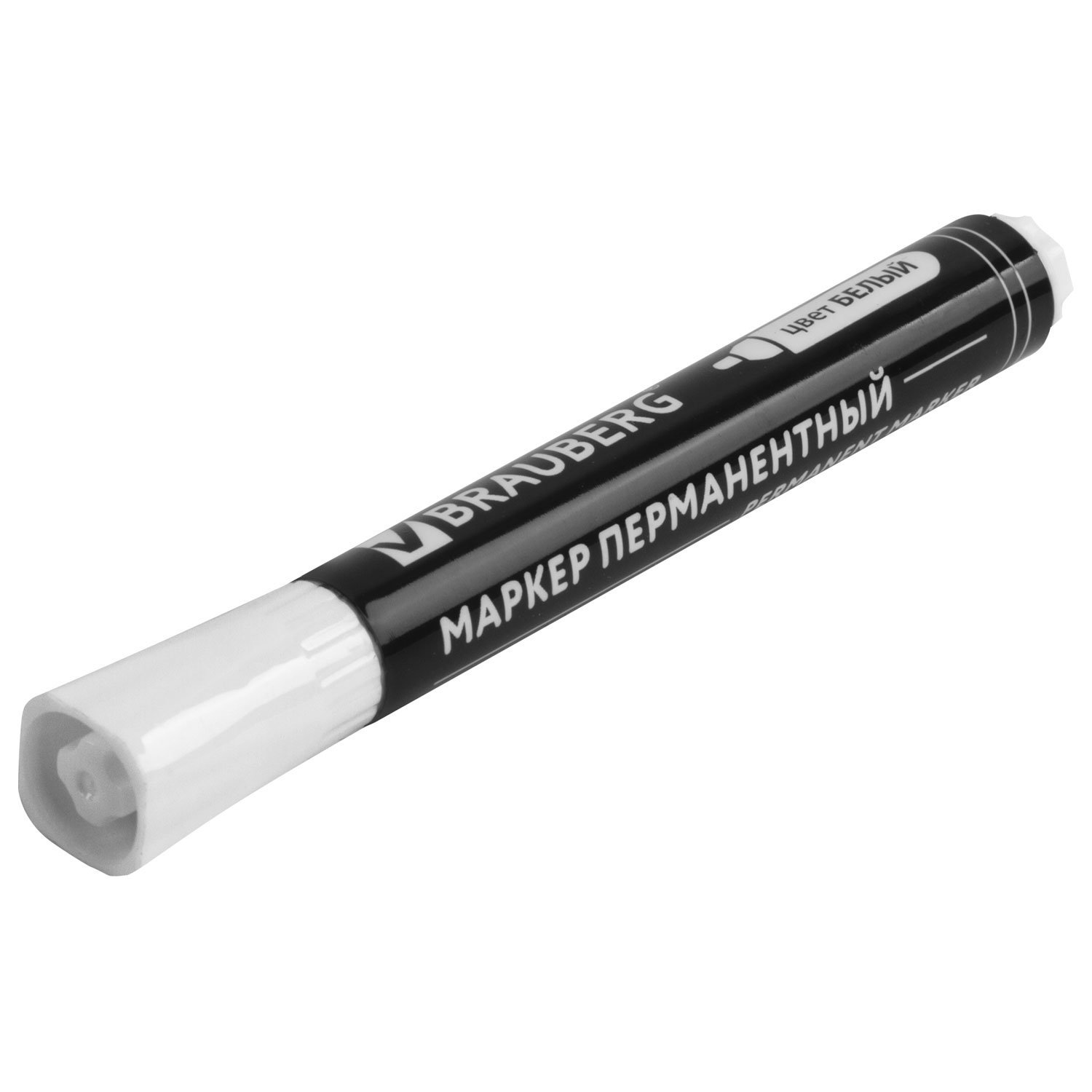 Маркер перманентный BRAUBERG WHITE EXTRA, БЕЛЫЙ, круглый наконечник 3 мм, 152488